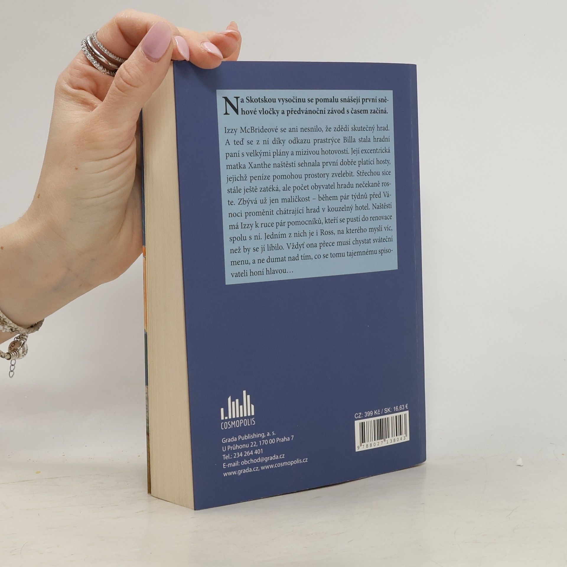 Na Skotskou vysočinu se pomalu snášejí první sněhové vločky a předvánoční závod s časem začíná Izzy McBrideové se ani nesnilo, že zdědí skutečný hrad. A teď se z ní díky odkazu prastrýce Billa stala hradní paní s velkými plány a mizivou hotovostí. Její excentrická matka Xanthe naštěstí sehnala první dobře platící hosty, jejichž peníze pomohou prostory zvelebit. Střechou sice stále ještě zatéká, ale počet obyvatel hradu nečekaně roste. Zbývá už jen maličkost – během pár týdnů před Vánoci proměnit chátrající hrad v kouzelný hotel. Naštěstí má k ruce pár pomocníků, kteří se pustí do renovace spolu s ní. Jedním z nich je i Ross, na kterého Izzy myslí víc, než by se jí líbilo. Vždyť ona přece musí chystat sváteční menu, a ne dumat nad tím, co se tomu tajemnému spisovateli honí hlavou…
