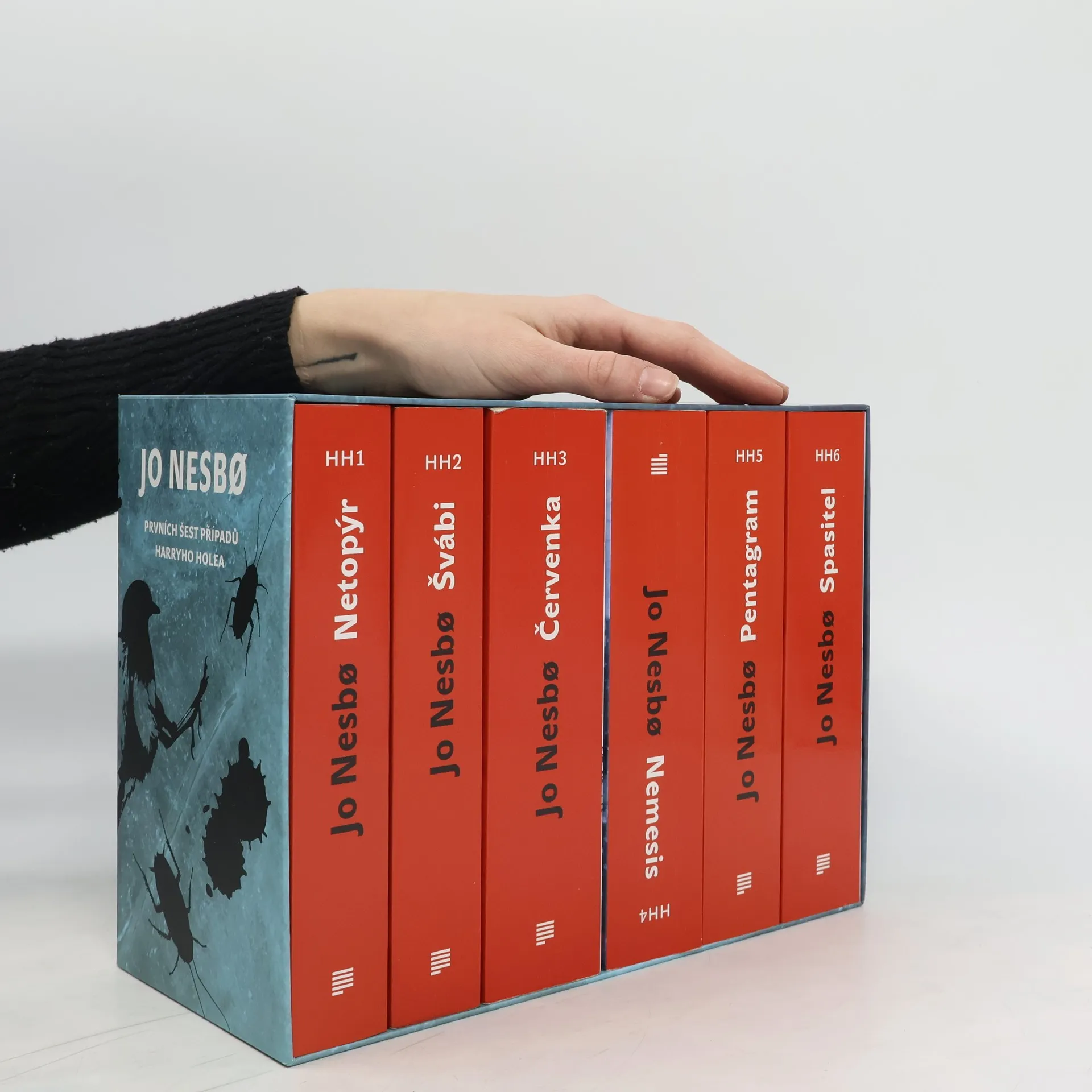 Seznamte se se svérázným detektivem Harrym Holem a ponořte se do fascinujícího světa vyšetřovaní nejneuvěřitelnějších zločinů. Skvělý vypravěč Jo Nesbo čtenáře rozhodně nešetří. Mrazivé napětí, záhadná zmizení, temný zločin, šokující vraždy a nečekané zvraty porcuje snad v každé kapitole všech prvních šesti dílů. Netopýr, Švábi, Červenka, Nemesis, Pentagram a Spasitel se odehrávají nejen ve Skandinávii, ale zavedou čtenáře do exotického Thajska nebo daleké Austrálie.