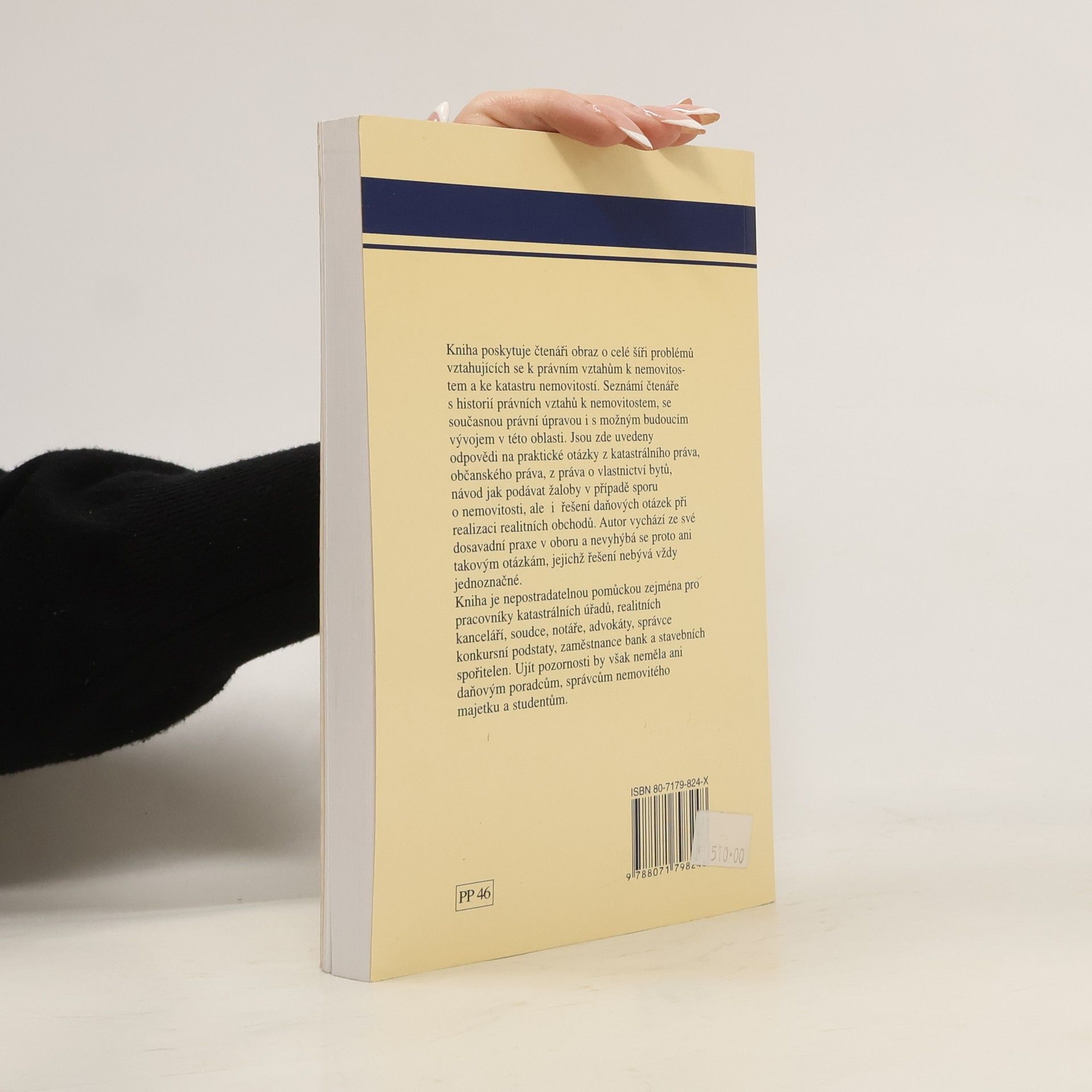 Již druhé, aktualizované vydání publikace poskytuje čtenáři obraz o celé šíři problémů vztahujících se k právním vztahům k nemovitostem a ke katastru nemovitostí. Seznámí čtenáře s historií právních vztahů k nemovitostem, se současnou právní úpravou i s možným budoucím vývojem v této oblasti. Jsou zde uvedeny odpovědi na praktické otázky z katastrálního práva, občanského práva, z práva o vlastnictví bytů, návod jak podávat žaloby v případě sporu o nemovitosti. Autor vychází ze své dosavadní praxe v oboru a nevyhýbá se proto ani otázkám, jejichž řešení nebývá vždy jednoznačné. Kniha je nepostradatelnou pomůckou zejména pro pracovníky katastrálních úřadů, realitních kanceláří, soudce, notáře, advokáty, správce konkursní podstaty, zaměstnance bank a stavebních spořitelen. Ujít pozornosti by však neměla ani daňovým poradcům, správcům nemovitého majetku a studentům právnických i jiných společenskovědních a ekonomických fakult.