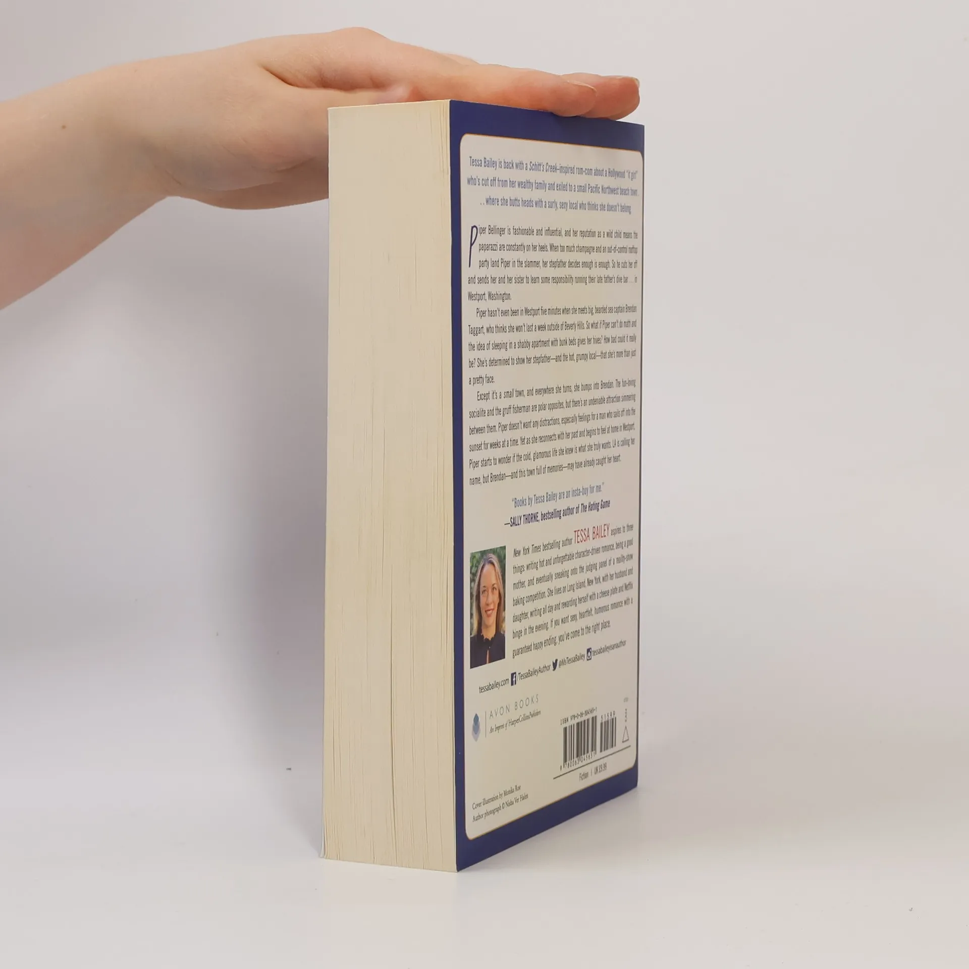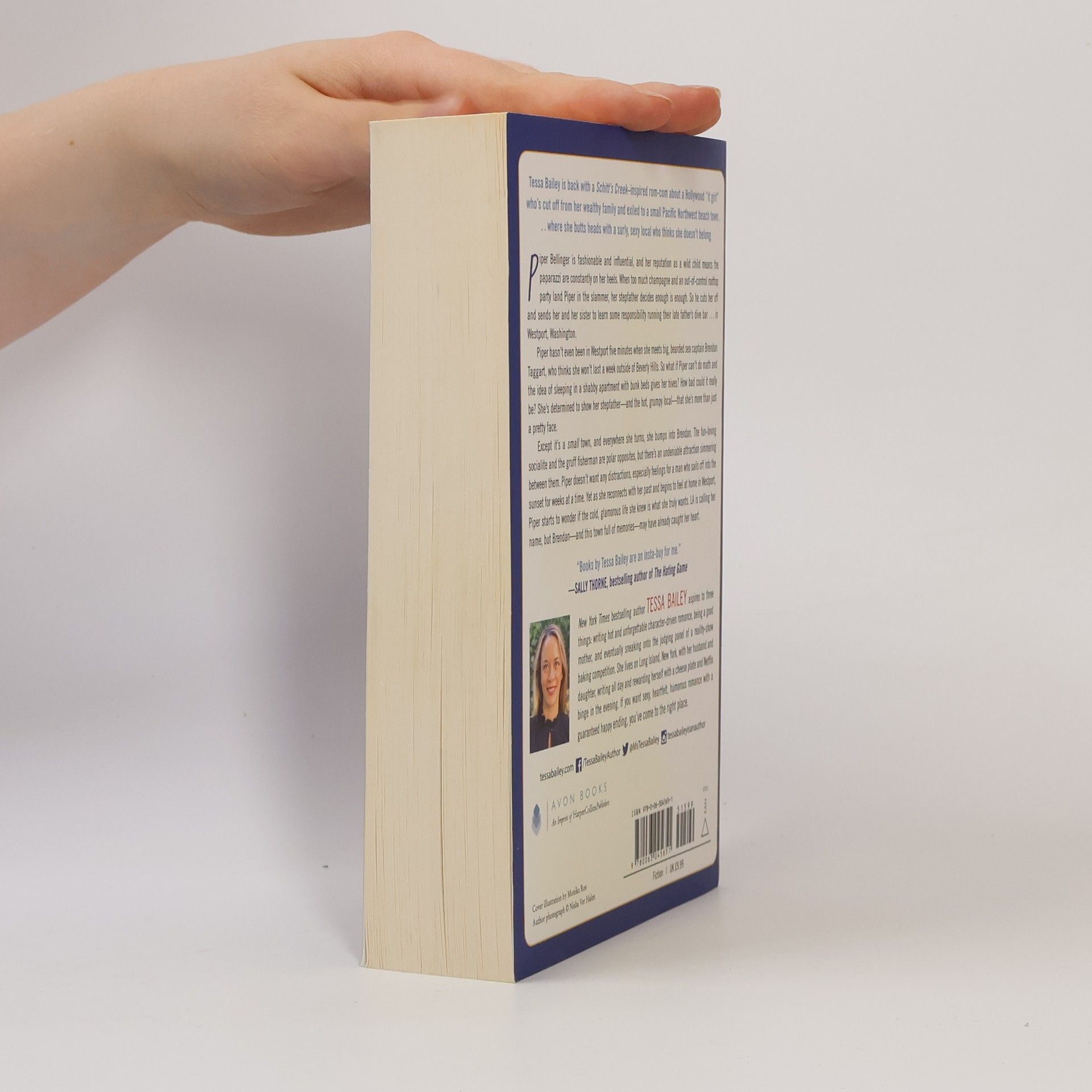 Tessa Bailey returns with a Schitt's Creek-inspired rom-com featuring a Hollywood "It Girl" exiled to a small Pacific Northwest beach town after her wild lifestyle lands her in trouble. Piper Bellinger, known for her fashion and social influence, faces the consequences of her actions when her stepfather cuts her off and sends her and her sister to manage their late father's dive bar in Washington. Upon arriving in Westport, Piper encounters Brendan, a rugged sea captain who doubts her ability to adapt to small-town life. Despite her struggles with responsibilities and the discomfort of her new living situation, Piper is determined to prove her worth to her stepfather and Brendan, the grumpy local who challenges her at every turn. Their contrasting personalities spark undeniable chemistry, complicating Piper's resolve to avoid distractions. As she begins to embrace her new surroundings and reconnect with her past, Piper questions whether her glamorous life in LA is what she truly desires. With Brendan and the town's memories capturing her heart, she faces a pivotal choice between her old life and a new, unexpected future.