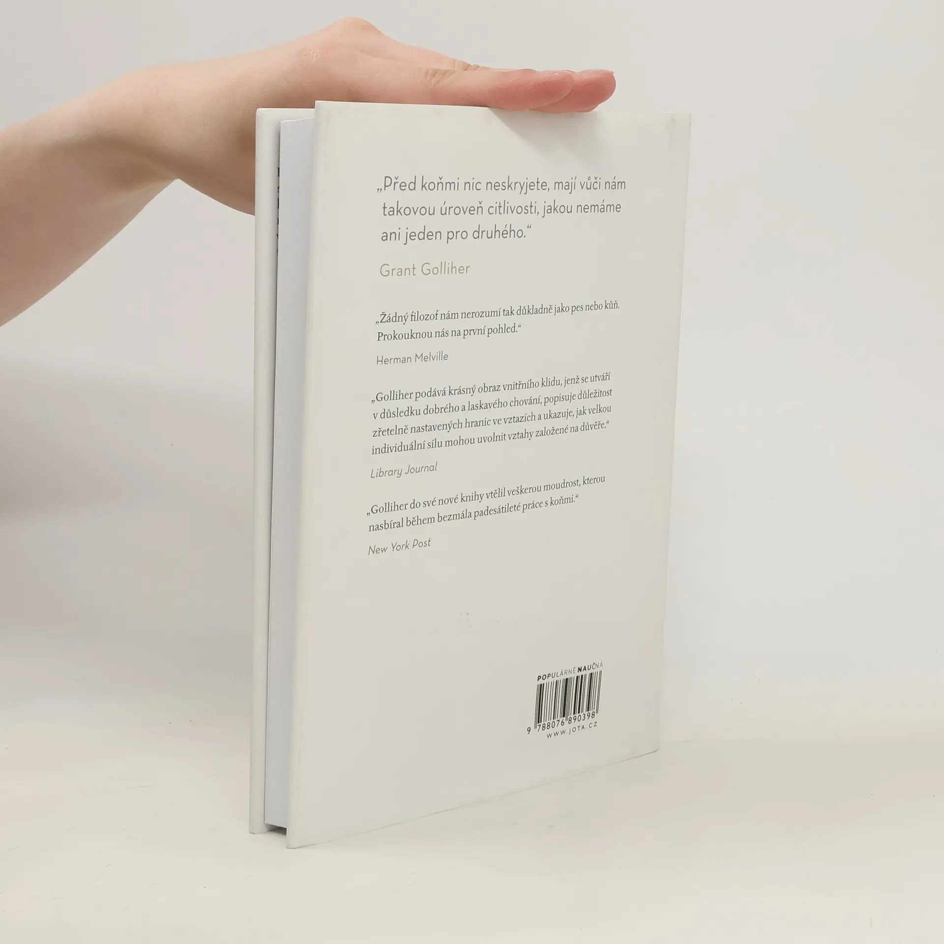 Všechno, co v životě opravdu potřebujete znát, se můžete naučit od koní.„Před koňmi nic neskryjete, mají vůči nám takovou úroveň citlivosti, jakou nemáme ani jeden pro druhého,“ říká zaříkávač koní a kouč Grant Golliher. Během své dlouholeté zkušenosti s prací s koňmi získal velké množství poznatků o komunikaci, nastavení hranic, férovosti, důvěře a respektu, které se týkají nejen koní, ale i lidí. K tomu, abychom druhým věnovali pozornost a chovali se k nim s citem, nepotřebujeme žádnou speciální dovednost ani kvalifikaci. Potřebujeme pokoru a ochotu učit se. Máme sklon nechat se snadno rozptýlit nebo se ponořit do vlastních myšlenek a pocitů. Unikají nám nápovědy, které máme přímo před očima. Nebo pokud si jich všimneme, vyložíme si je špatně, protože se na ně díváme filtrem vlastních emocí. Naladit se na druhé a věnovat jim dostatek pozornosti, abychom dokázali vycítit, co se děje pod povrchem, je stejně přirozené a odvěké jako soulad mezi koňmi, lidmi na jejich hřbetech a přírodou. Zaříkávání koní není magie. Jde jen o rozvíjení dobrovolného partnerství založeného na vzájemné důvěře a respektu. Jde o přístup, jehož osvojení bude k užitku každému, kdo chce lépe porozumět lidem a lidství, překonat trauma, zažívat plnohodnotnější vztahy a uvolnit nevyužitý potenciál svého života. Nejde o žádná kouzla. Stačí myslet jako kůň.