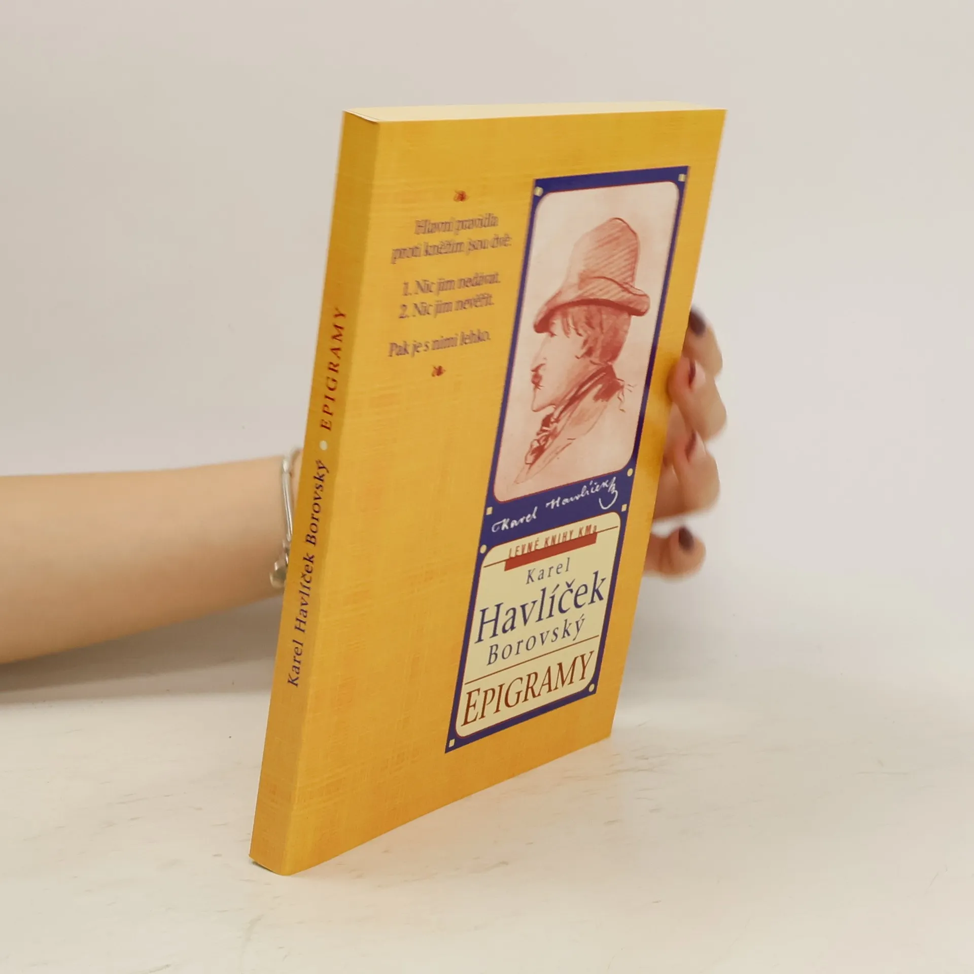 Svazek obsahuje kompletní souhrn epigramů klasika a zakladatele české žurnalistiky. Havlíček dokonale ovládal umění vyjádřit se stručným, satiricky vyhroceným básnickým útvarem a sám epigramy charakterizoval jako „malinké nádoby, do kterých vztek svůj nalívám, aby mi srdce nežral“. Tato část jeho tvorby vznikala pod dojmem tehdejší společenské a politické situace. Některé události, odehrávající se v době Havlíčkova života, autora silně rozrušily a proto se pokoušel získat nad nimi převahu pomocí vtipu a humoru. Havlíčkův styl dokáže i dnešního čtenáře upoutat nepřebernou škálou ironie i komiky, jež se pohybují v různých polohách a zahrnují v sobě jak intelektuální náboj, tak i jadrný plebejský humor.
