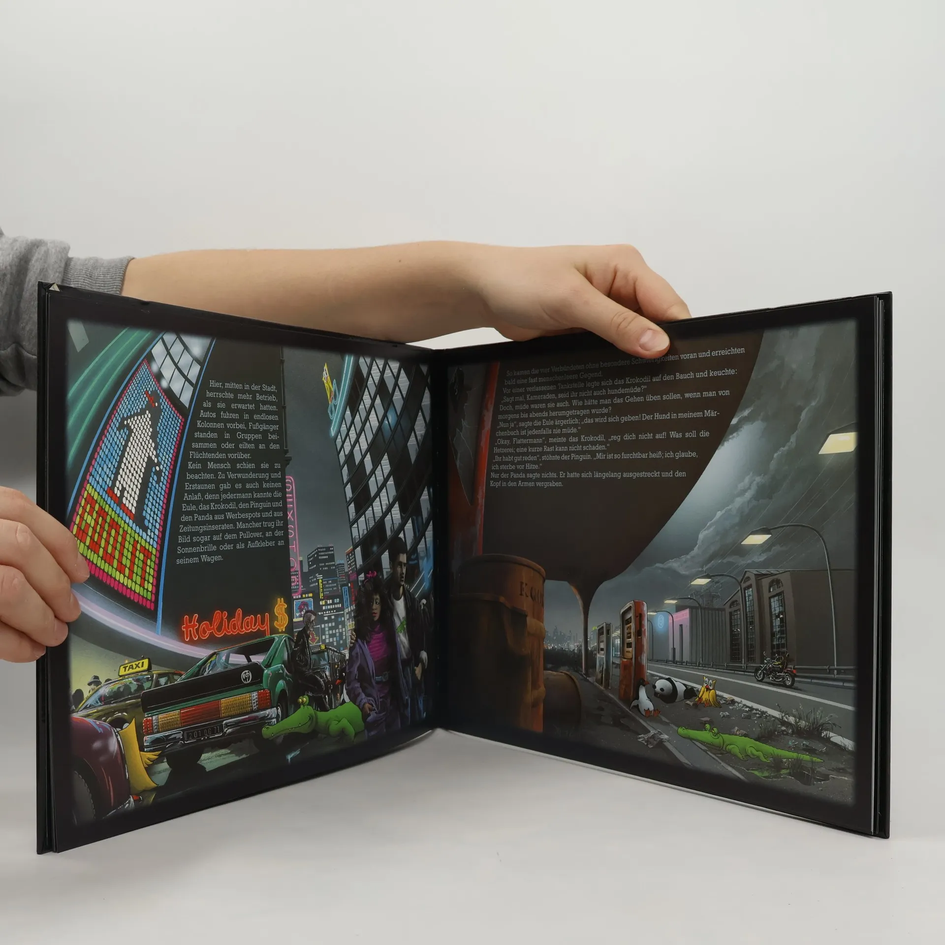 Eine Handvoll Tiere, seit langem für Werbung missbraucht, probiert nach dem Vorbild der Bremer Stadtmusikanten den Aufstand. Ein anspruchsvoll kritisches Bilderbuch.