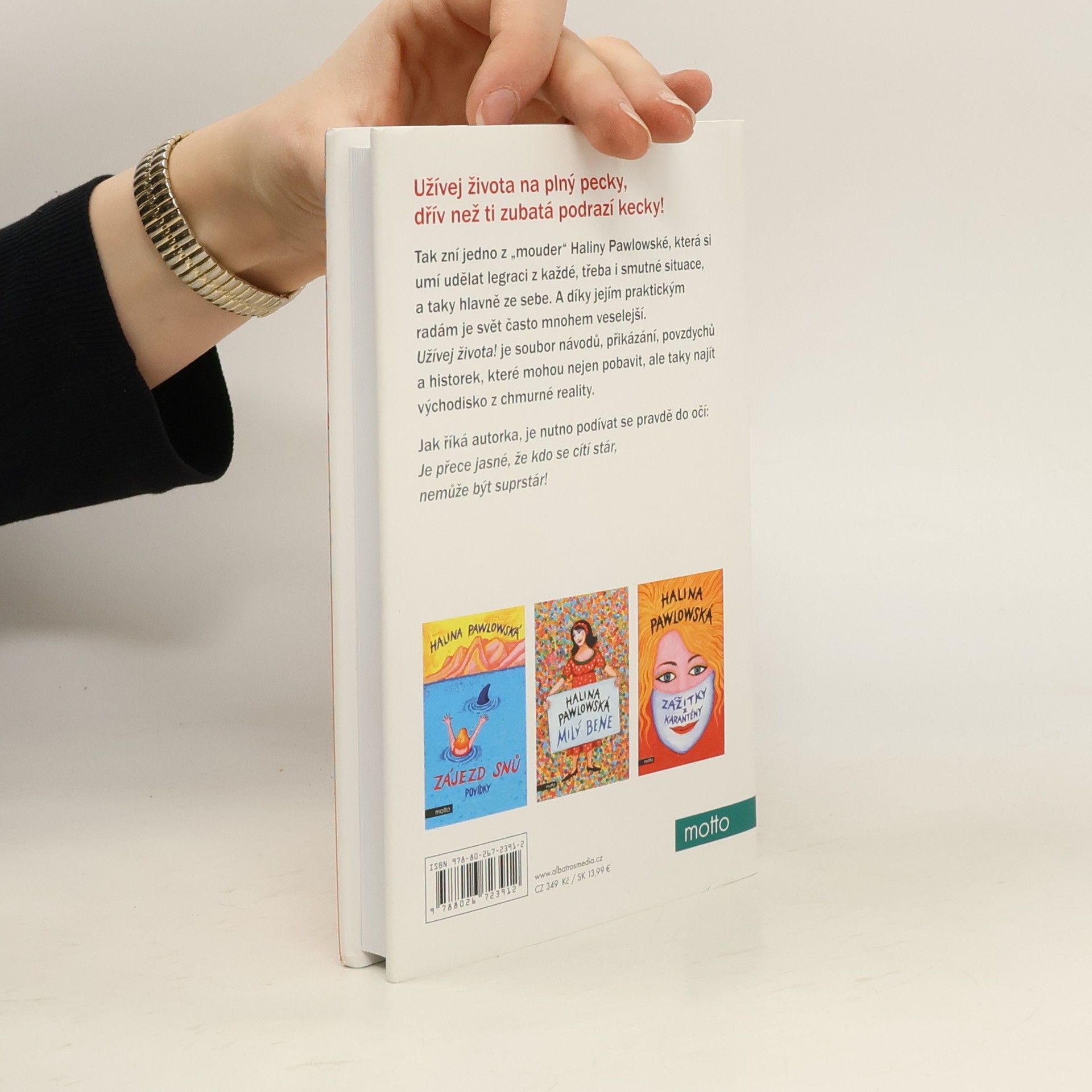 Užívej života na plný pecky, dřív než ti zubatá podrazí kecky!Tak zní jedno z pořekadel Haliny Pawlowské, která si umí udělat legraci z každé, třeba i smutné situace, a taky hlavně ze sebe. A díky jejím praktickým radám je svět často mnohem veselejší. Užívej života! je soubor návodů, přikázání, povzdychů a historek, které mohou nejen pobavit, ale taky najít východisko z chmurné reality. Jak říká autorka, je nutno podívat se pravdě do očí: Je přece jasné, že kdo je stár, nemůže být suprstár!