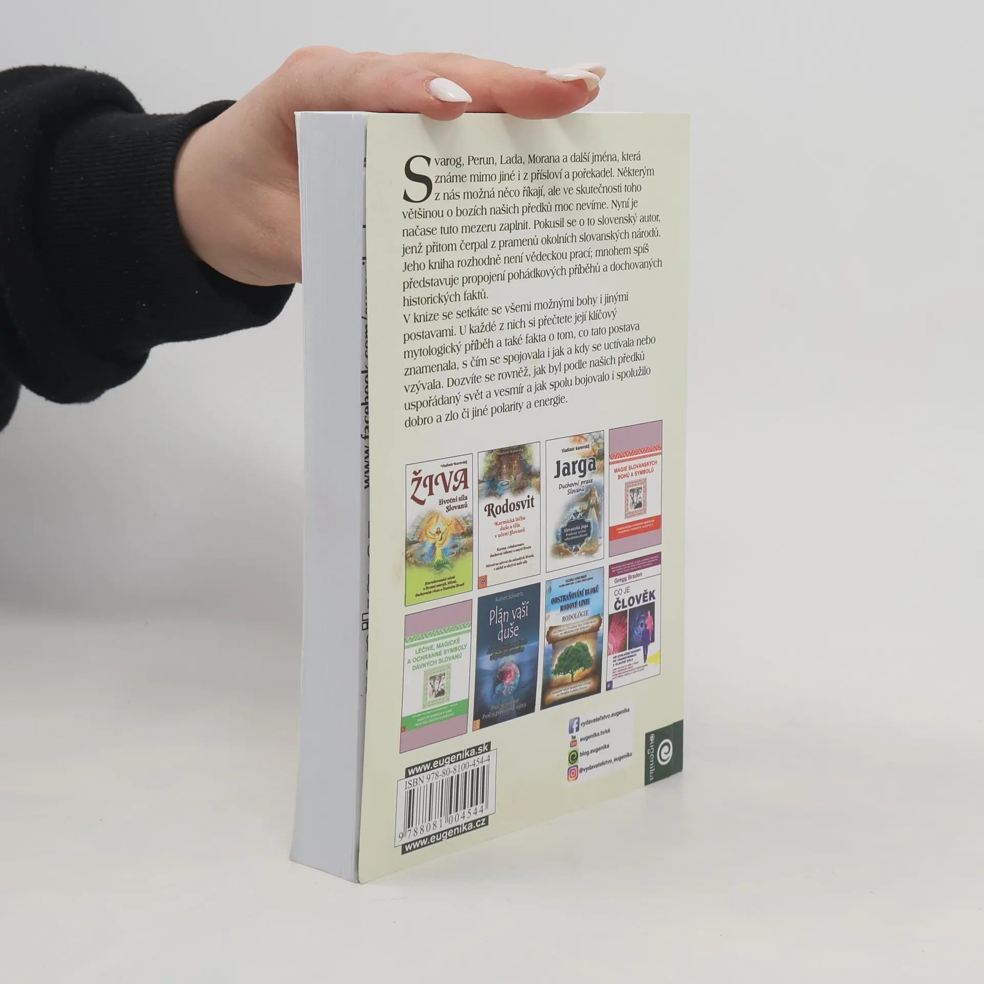 První kniha, která představuje naše stará božstva a příběhy s nimi spojené. Svarog, Perún, Veles - kdo by neznal tyto staré slovanské božství? To jsem si myslel původně i já předtím, než jsem začal pracovat na této knize. Přišel jsem však na to, že většina z nás ví o božstvích našich předků velmi málo. Známe různé starověké mýty: řecké, římské ... známe množství božstev indických či tibetských, ba i o Ódinovi nebo Thorovi toho víme víc, než o našich původních slovanských božstvech. A tak jsem se ujal na napsání této knihy, která nemá být vědeckou publikací, ale spíše takovou slovanskou odyseou. Najdete zde staré, téměř zapomenuté legendy, jakož i popisy bohů a démonů slovanského panteonu. Dozvíte se, jak asi naši předkové své bohy vzývali, jak se k nim modlili i co jim obětovali. Při psaní jsem čerpal informace z různých zdrojů. Nejen ze Slovenské či českých, ale i z polských, a v neposlední řadě ruských a ukrajinských.