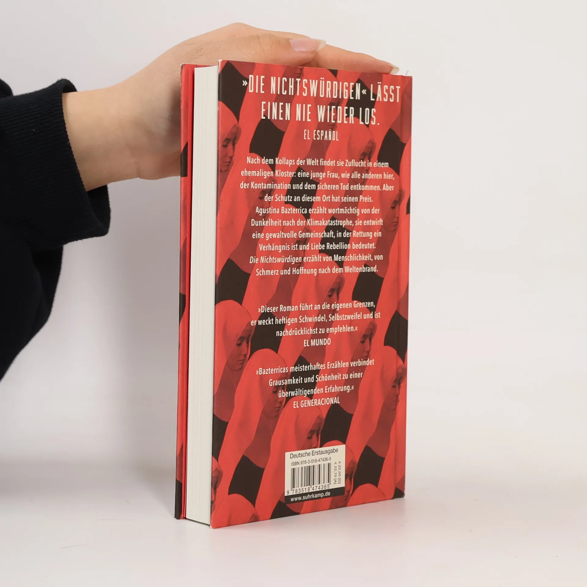 Agustina Bazterrica schildert in "Die Nichtswürdigen" die düstere Realität nach einer Klimakatastrophe. In einem ehemaligen Kloster lebt eine junge Frau in einer gewaltsamen Gemeinschaft, wo Gehorsam über Leben und Tod entscheidet. Eine neue Schwester bringt sie dazu, die strengen Regeln zu hinterfragen und neue Wege der Fürsorge und Zärtlichkeit zu entdecken.