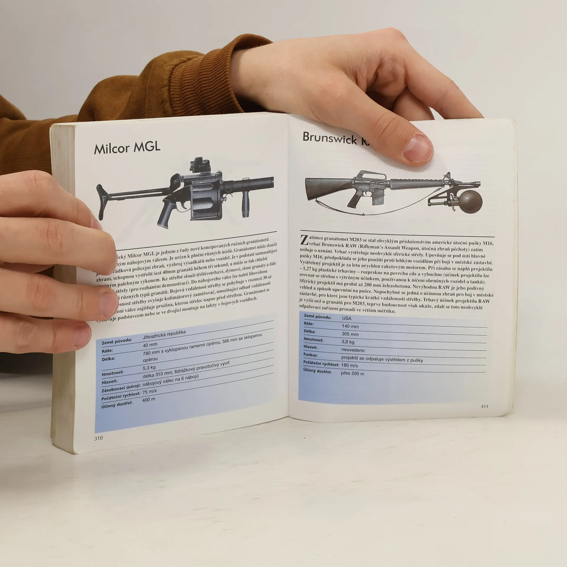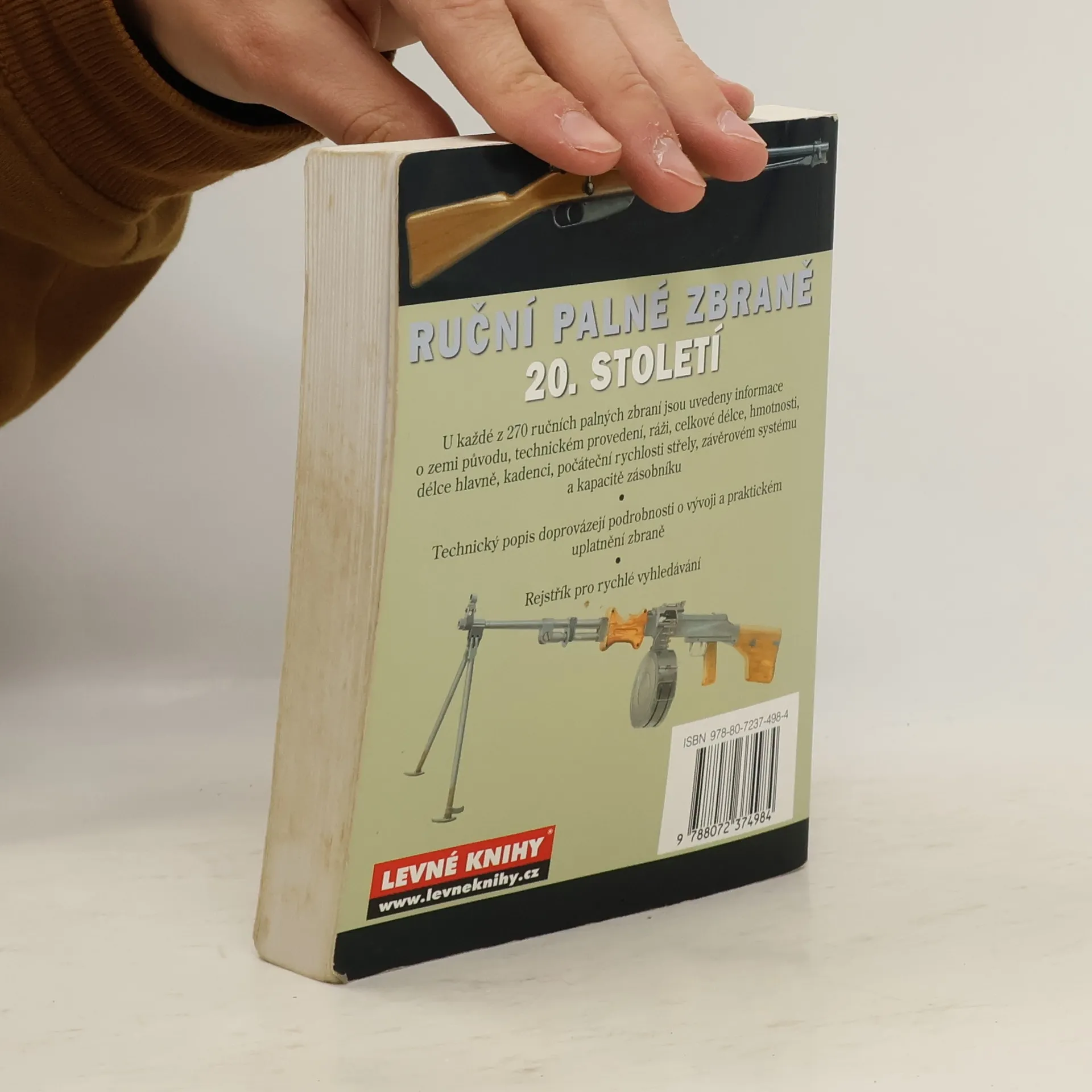 Příručka obsahuje téměř 300 významných typů ručních palných zbraní 20. století. V úvodu autor jen velmi krátce rekapituluje vývoj ručních palných zbraní v 19., ale zejména ve 20. století. V sedmi základních kapitolách ( pistole a revolvery, samopaly, kulomety, opakovací pušky, samočinné pušky, brokovnice a granátomety) jsou jednotlivé typy zbraní řazeny podle zemí původu. Barevné kresby, někdy řezy, jsou doplněny stručným, ale obsažným textem o vývoji, technickém řešení či uplatnění zbraně. Samozřejmostí jsou základní technické údaje: ráže, hmotnost, systém závěru, účinný dostřel a další.