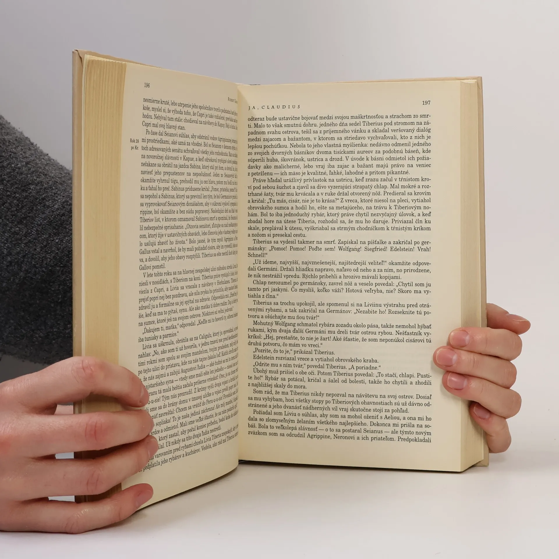 Je to historický román zo starého Ríma za čias cisára Augusta, Tibéria a Caligulu. Dívame sa na život v palácoch, na súdy, čo sa deje v senáte. Je to veľmi pôsobivý román.