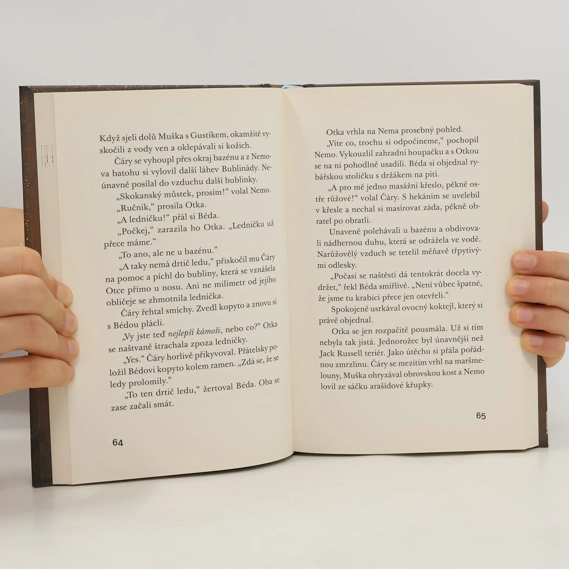 Ding-dong, nový balíček je tady! A co je v něm tentokrát? Páni! Kouzelný jednorožec Magic! Umí říhat, pouštět duchy – a teď to nejlepší: Dokáže splnit každé přání! Nemo, Otka a Béda nemohou uvěřit svému štěstí. Teď se jim opravdu splní všechno, o čem kdy snili! A obyvatelům Horního Suchopáru taky. To je přece super! Nebo ne? Pátý příběh z oblíbené série dobrodružství pro děti přináší spoustu překvapení i spoustu otázek: Jak si naši tři hrdinové Nemo, Otka a Béda poradí s tvrdohlavým jednorožcem? Podaří se jim ho přivést tam, kam patří, a Hornímu Suchopáru vrátit klid? Kdo bude nový starosta? A co všechna splněná přání? Poutavé vyprávění o dětském přátelství ve světě dospělých by nebylo úplné bez kouzelných obrázků Fréderica Betranda. I rodiče se při čtení na dobrou noc možná trochu zasní...
