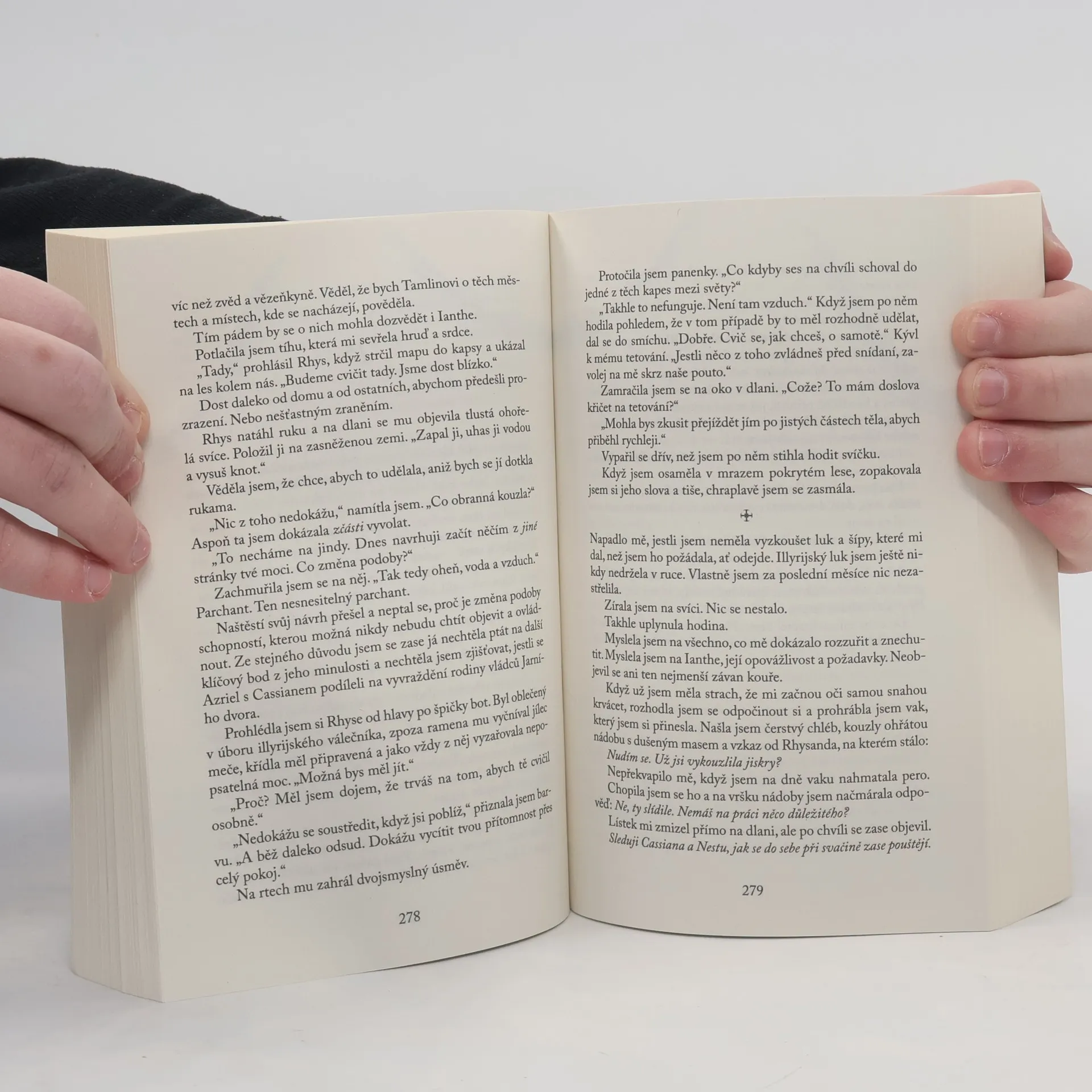 Druhý díl young adult fantasy série na pohádkový námět krásky a zvířete staví hrdinku Feyre před nová rozhodnutí a hrozby. Feyre přežila střet s Amaranthou a vrátila se na Jarní dvůr. Avšak ani zde nemá klidu, protože ji neustále pronásledují vzpomínky na to, co musela udělat, aby osvobodila Tamlina i jeho lid. A stejně tak nemůže zapomenout ani na smlouvu s Rhysandem, s kterým má strávit jeden týden v měsíci. Ač je nyní vznešenou vílou, srdce má stále lidské. A navíc si postupně uvědomuje, že na obzoru se objevuje ještě mnohem větší zlo, než jaké kdy zažila. A tak zatímco se snaží vyznat v zákrutech vílího života, zjišťuje, že její role zachránkyně ještě neskončila. Avšak dokáže se vyrovnat s nebezpečím, které se k ní blíží? Nakladatelská anotace.