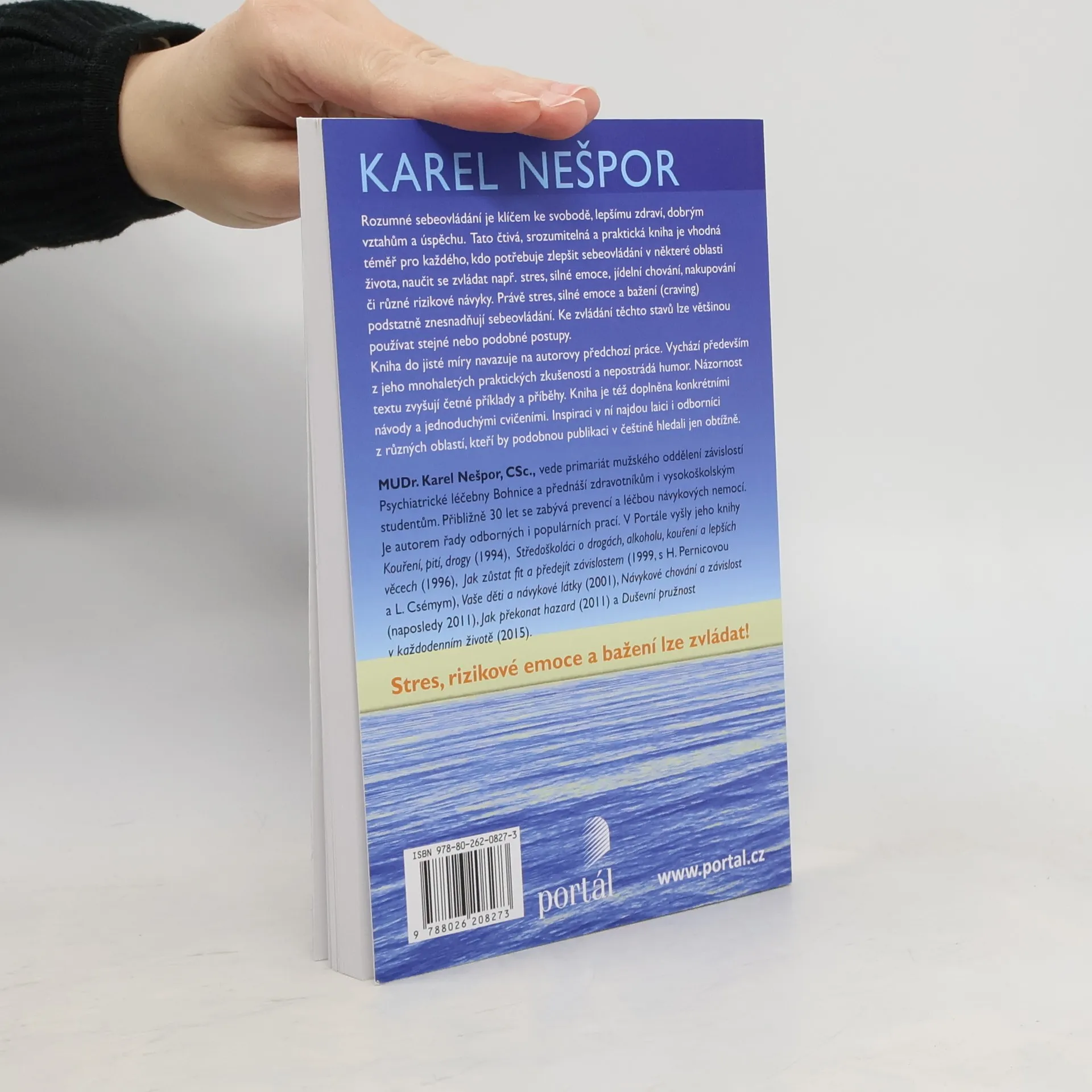 Rozumné sebeovládání je klíčem ke svobodě, zdraví, vztahům a úspěchu. Tato kniha je čtivá, srozumitelná a praktická, ideální pro každého, kdo chce zlepšit sebeovládání v různých oblastech života, jako je zvládání stresu, silných emocí, jídelního chování či rizikových návyků. Stres a silné emoce podstatně ztěžují sebeovládání, avšak lze na ně aplikovat podobné postupy. Kniha navazuje na autorovy předchozí práce zaměřené na léčbu návykových nemocí a zvládání stresu. Vychází z jeho dlouholetých praktických zkušeností a obsahuje humor. Zajímavost textu zvyšují příklady a příběhy z každodenního života. Kniha nabízí konkrétní návody a jednoduchá cvičení. Inspiraci zde najdou nejen laici, ale i odborníci z různých oborů, přičemž podobnou publikaci v češtině je obtížné nalézt. Autor, MUDr. Karel Nešpor, CSc., vede primariát mužského oddělení závislostí v Psychiatrické léčebně Bohnice a přednáší zdravotníkům a studentům. Již 30 let se věnuje prevenci a léčbě návykových nemocí a je autorem řady odborných i populárních prací.