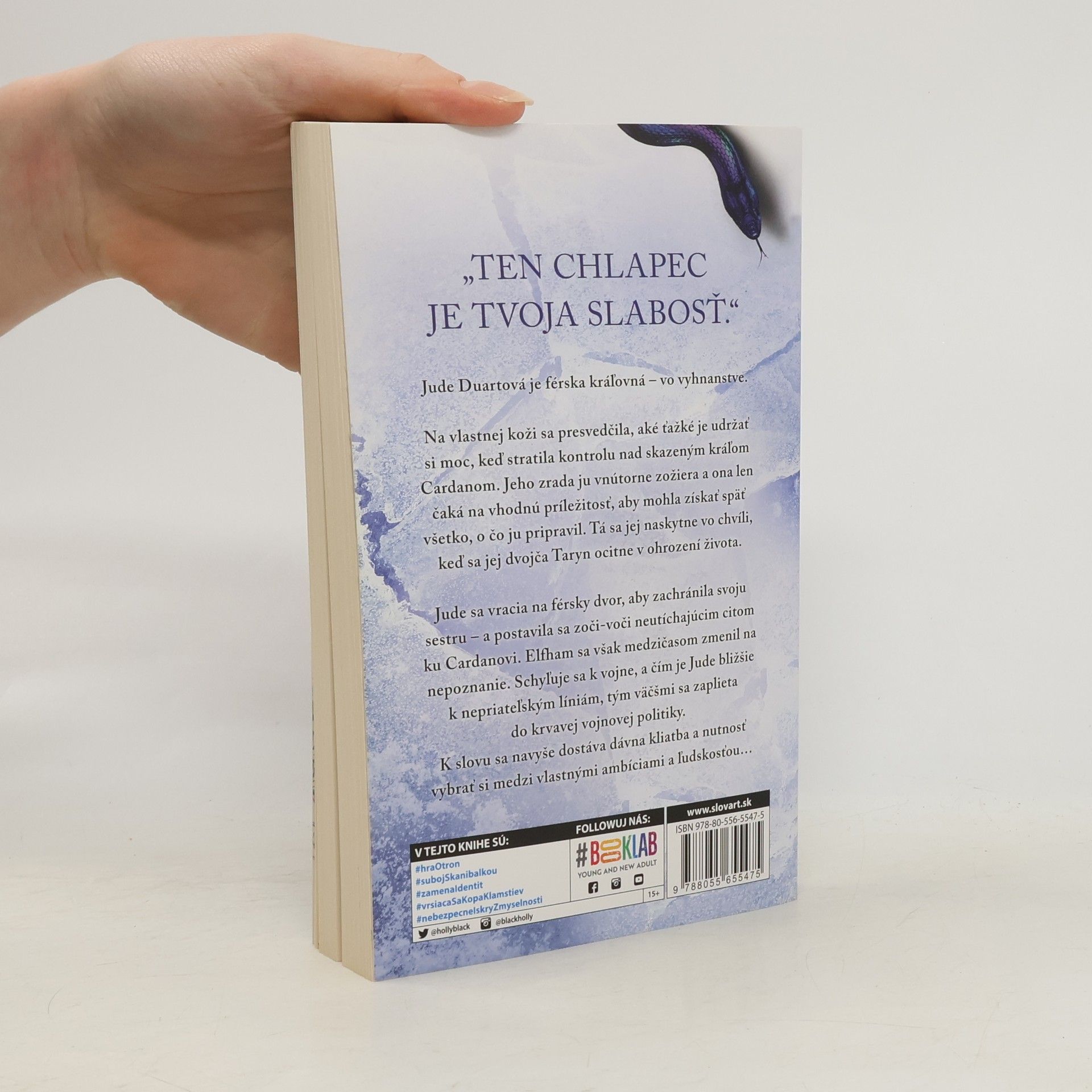 Reedícia úspešnej trilógie Férska sága a jej strhujúce vyvrcholenie! Moc sa dá získať veľmi jednoducho, zložitejšie je udržať si ju. Jude to zažila na vlastnej koži, keď sa výmenou za neobmedzené vládnutie vzdala kontroly nad skazeným kráľom Cardanom. Ako férska kráľovná vo vyhnanstve je Jude úplne bezmocná. Cardanova zrada ju vnútorne zožiera a čaká na vhodnú príležitosť, aby mohla získať späť všetko, o čo ju pripravil. Tá sa jej naskytne vo chvíli, keď sa jej dvojička, Taryn, ocitne v ohrození života. Jude si trúfne vrátiť sa na zradný férsky dvor, postaviť sa zoči-voči neutíchajúcim citom ku Cardanovi, a to všetko preto, aby zachránila svoju sestru. Elfham sa však medzičasom zmenil na nepoznanie. Schyľuje sa k vojne, a čím je Jude bližšie k nepriateľským líniám, tým väčšmi je zapletená do krvavej vojnovej politiky. Keď však začne účinkovať dávna kliatba, krajinu premkne panika a Jude si musí vybrať medzi vlastnými ambíciami a ľudskosťou...