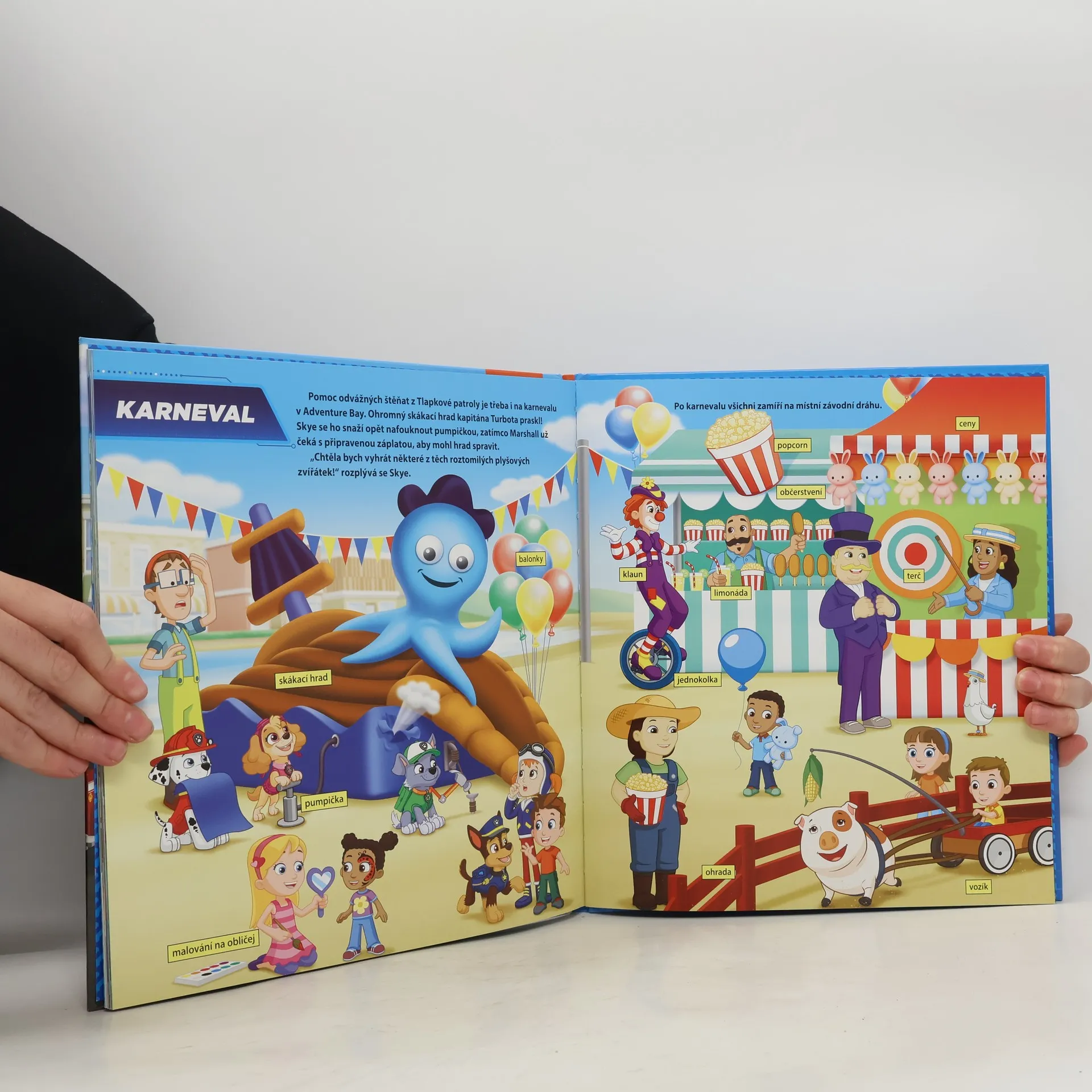 Užij si s tlapkami vzrušující den v Adventure Bay a nauč se spoustu nových slov! Přidej se k oblíbeným hrdinům z Tlapkové patroly a vyprav se s nimi na další zásah. Statečná štěňata vyrážejí z centrály, aby podala pomocnou tlapku na hasičské stanici, na farmě, v továrně i na moři.