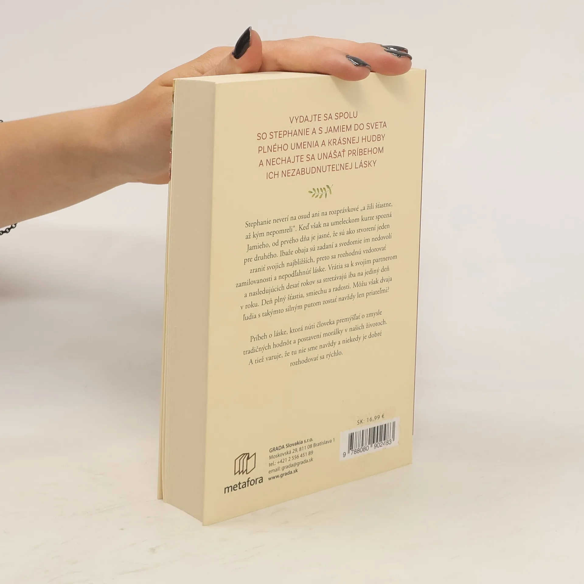 Román o vášni k umeniu, láske k hudbe a osude dvoch ľudí, ktorí si k sebe hľadajú cestu Vydajte sa spolu so Stephanie a Jamiem do sveta plného umenia a krásnej hudby a nechajte sa unášať príbehom ich nezabudnuteľnej lásky. Stefanie neverí na osud, ani na rozprávkové „a žili šťastne, až kým nepomreli“. Keď však na umeleckom kurze spozná Jamieho, od prvého dňa je jasné, že sú ako stvorení jeden pre druhého. Ibaže obaja sú zadaní a svedomie im nedovolí zraniť svojich najbližších. Preto sa rozhodnú vzdorovať zamilovanosti a nepodľahnúť láske. Vrátia sa k svojim partnerom a nasledujúcich desať rokov sa stretávajú iba na jediný deň v roku. Deň plný šťastia, smiechu a radosti. Môžu však dvaja ľudia s takýmto silným putom zostať navždy len priateľmi? Príbeh o láske, ktorá núti človeka zamyslieť sa nad zmyslom tradičných hodnôt a postavením morálky v našich životoch. A tiež varuje, že tu nie sme navždy a niekedy je dobré rozhodovať sa rýchlo.