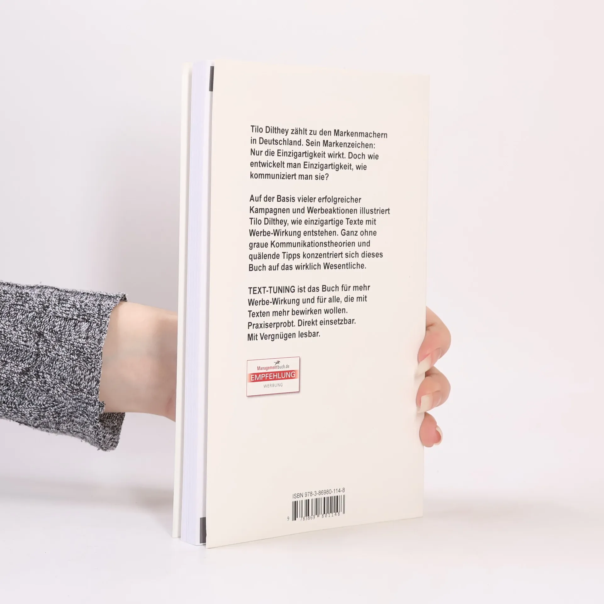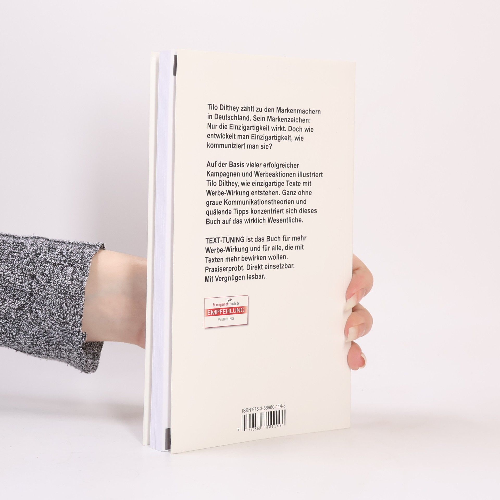 Tilo Dilthey, ein führender Markenmacher in Deutschland, zeigt in "TEXT-TUNING", wie man Einzigartigkeit entwickelt und kommuniziert. Anhand erfolgreicher Kampagnen vermittelt das Buch praxisnahe, effektive Methoden für wirkungsvolle Texte, ohne komplizierte Theorien. Ein unterhaltsamer Leitfaden für alle, die mit Texten überzeugen wollen.
