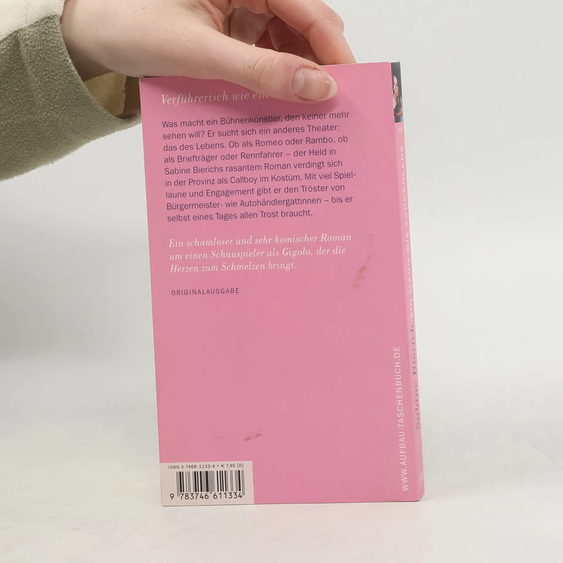 In Sabine Bierichs erstem Roman „Ein Mann wie Schokolade“ wird ein gescheiterter Schauspieler zum Callboy in der Provinz. Er spielt verschiedene Rollen und tröstet Frauen aus der Nachbarschaft, bis er selbst Trost benötigt. Der Roman ist schamlos, sinnlich und komisch, voller Spiellaune und Verführung.