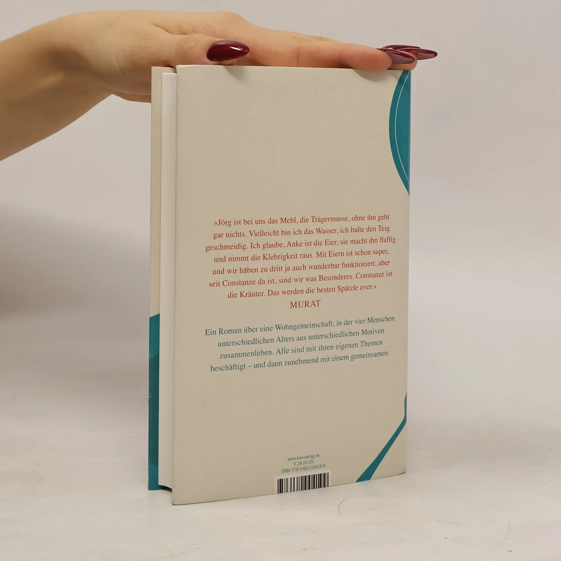 Ein Roman über eine Wohngemeinschaft, in der vier Menschen unterschiedlichen Alters und Motiven zusammenleben. Constanze zieht nach ihrer Trennung ein und bringt frischen Wind in die WG. Jeder der vier Protagonisten hat eigene Träume und muss sich der Frage stellen, ob sie eine Zweck-WG oder eine Wahlfamilie sind.