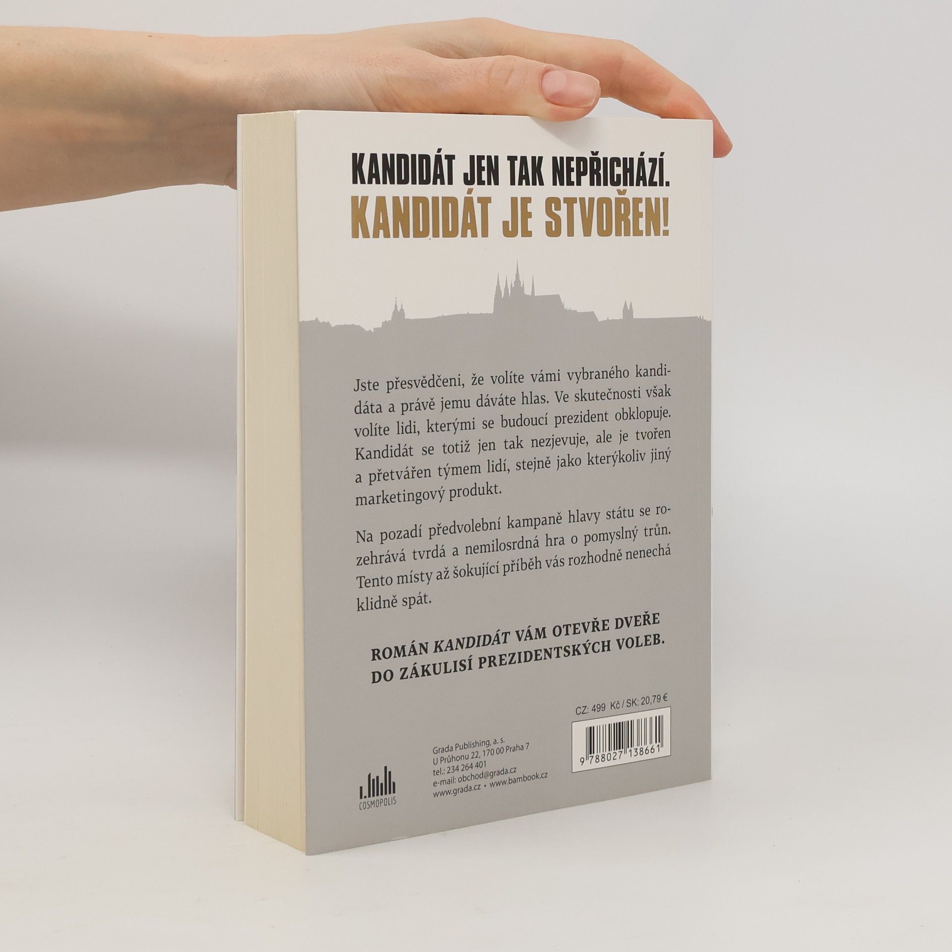 OPRAVDU VOLÍTE POUZE PREZIDENTA?KANDIDÁT JEN TAK NEPŘICHÁZÍ.KANDIDÁT JE STVOŘEN! Jste přesvědčeni, že volíte vámi vybraného kandidáta a právě jemu dáváte hlas. Ve skutečnosti však volíte lidi, kterými se budoucí prezident obklopuje. Kandidát se totiž jen tak nezjevuje, ale je tvořen a přetvářen týmem lidí, stejně jako kterýkoliv jiný marketingový produkt. Na pozadí předvolební kampaně hlavy státu se rozehrává tvrdá a nemilosrdná hra o pomyslný trůn. Tento místy až šokující příběh vás rozhodně nenechá klidně spát.Přestože je tento román fikce, autorka při psaní knihy čerpá z vlastních zkušeností z prostředí prezidentské kampaně, kdy pracovala na pozici tiskové mluvčí jednoho z kandidátů. Rovněž těží z praxe televizní reportérky, a mistrně popisuje zákulisí příprav večerních zpráv, politických debat a předvolební práce médií vůbec.