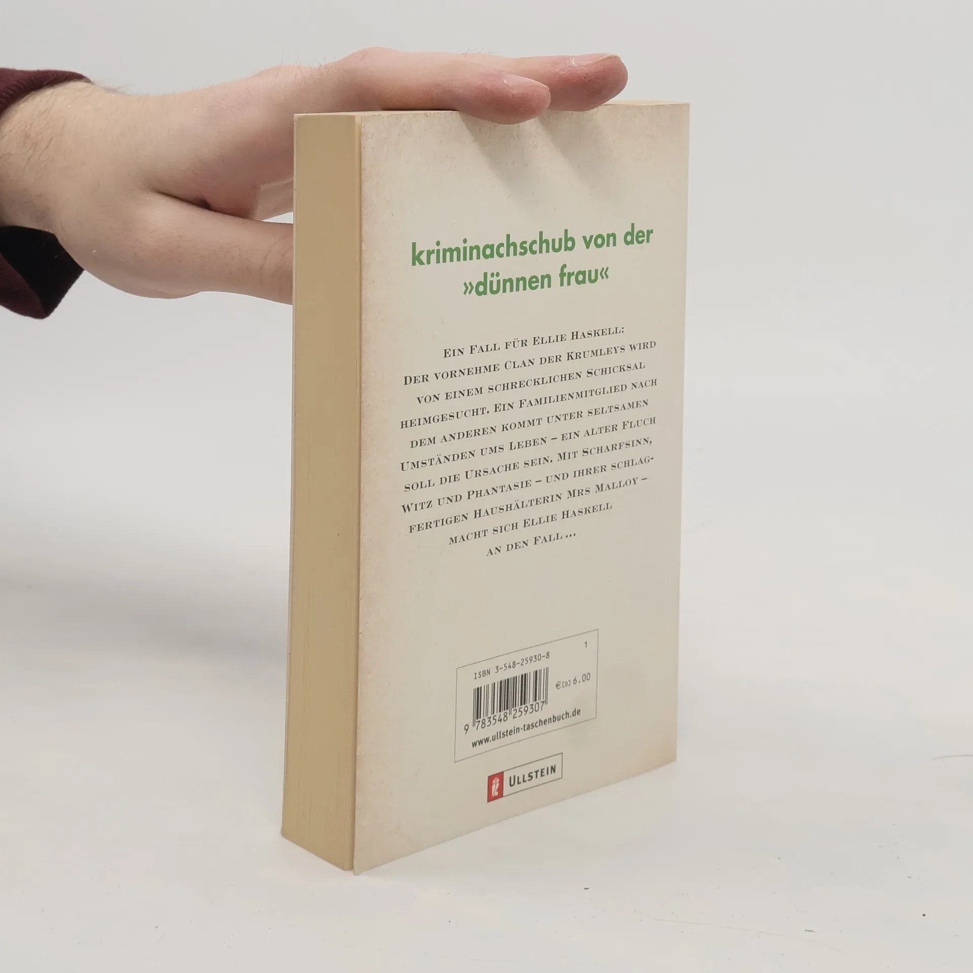 Mrs Malloy, Ellie Haskells Haushälterin mit der gefährlich scharfen Zunge, hat einen interessanten Nebenjob: Sie putzt in einer Detektei ? und stöbert mindestens so lange in den Akten, wie sie sie abstaubt. Als die beiden einen gemütlichen Abend in dem Detektivbüro verbringen, steht plötzlich eine Klientin in der Tür: Lady Krumley. Ellie und Mrs Malloy verzichten darauf, die Situation zu erklären, denn die Dame scheint all ihre Hilfe zu brauchen: Ein Familienmitglied nach dem anderen stirbt auf höchst mysteriöse Weise und Lady Krumley vermutet, dass ein alter Fluch, der einst über die Familie gesprochen wurde, der Grund dafür ist. Nun sucht sie nach einer jungen Frau, Ernestine, denn sie allein kann den Fluch aufheben. Eine harte Nuss für das ungewöhnliche Detektivduo ...
