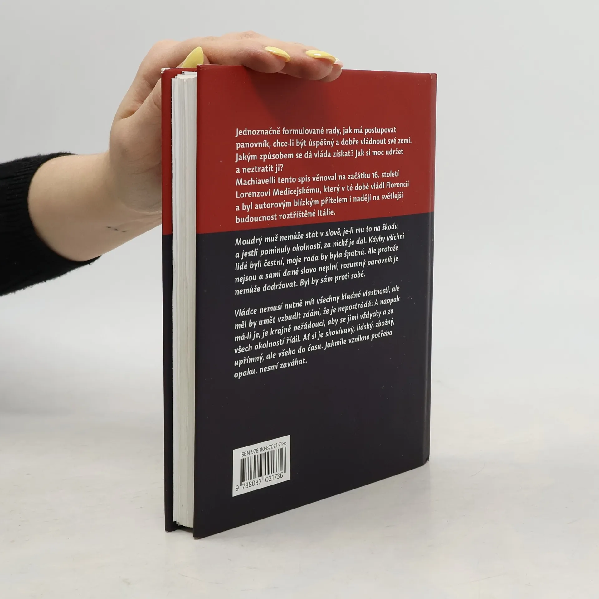 Klasický renesanční spis, jenž je považován za jedno z prvních a zároveň jedno z nejvýznamnějších politologických pojednání o moderním způsobu vládnutí. Čtivé dílo vzniklo v období restaurace vlády Medicejských na florentském dvoře r. 1513. Autorem, bývalým sekretářem ministerstva zahraničních věcí, je adresováno však již zesnulému Lorenzu Medicejskému. Hlavní osou dvaceti šesti kapitol jsou příklady z antických a římských dějin, pomocí nichž je postupně eklekticky obhajován osvícený vladař, řídící se zásadami logiky a zdravého rozumu. Spiskem rovněž prosvítají zárodky nacionalistických tendencí. V tomto překladu 4. vydání, v nakl. XYZ 1. vydání.