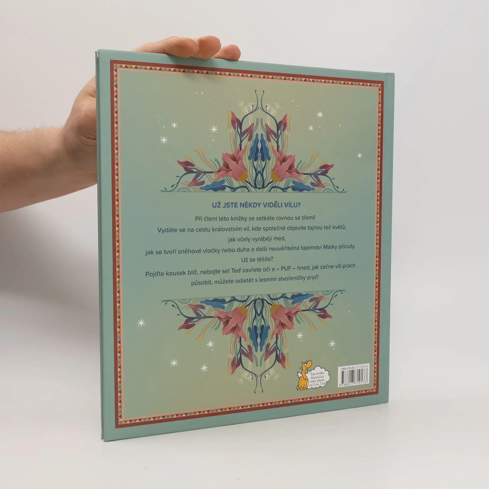 Při čtení této knížky se setkáte rovnou se třemi! Vydáte se na cestu královstvím víl, kde společně objevíte tajnou řeč květů, jak včely vyrábějí med, jak se tvoří sněhové vločky nebo duha a další neuvěřitelná tajemství Matky přírody. Už se těšíte? Pojďte kousek blíž, nebojte se! Teď zavřete oči a – PUF – hned, jak začne vílí prach působit, můžete odletět s lesními stvořeníčky pryč!