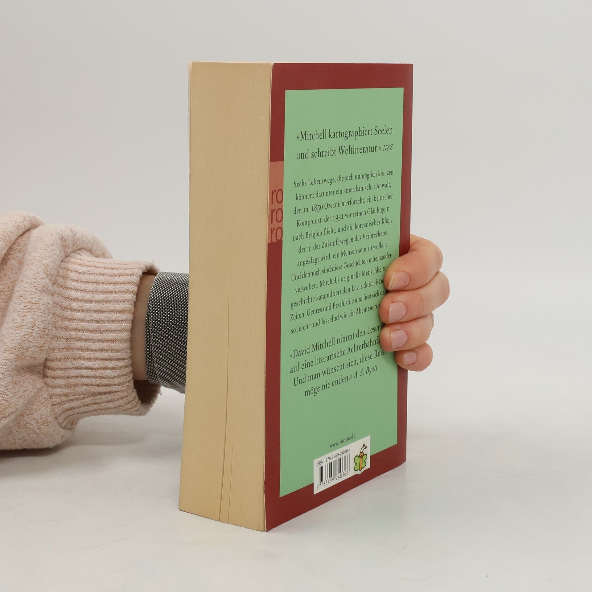 Sechs Lebenswege, die sich unmöglich kreuzen können: darunter ein amerikanischer Anwalt, der um 1850 Ozeanien erforscht, ein britischer Komponist, der 1931 vor seinen Gläubigern nach Belgien flieht, und ein koreanischer Klon, der in der Zukunft wegen des Verbrechens angeklagt wird, ein Mensch sein zu wollen. Und dennoch sind diese Geschichten miteinander verwoben. Mitchells originelle Menschheitsgeschichte katapultiert den Leser durch Räume, Zeiten, Genres und Erzählstile und liest sich dabei so leicht und fesselnd wie ein Abenteuerroman.„David Mitchell nimmt den Leser mit auf eine literarische Achterbahnfahrt. Und man wünscht sich, diese Reise möge nie enden.“