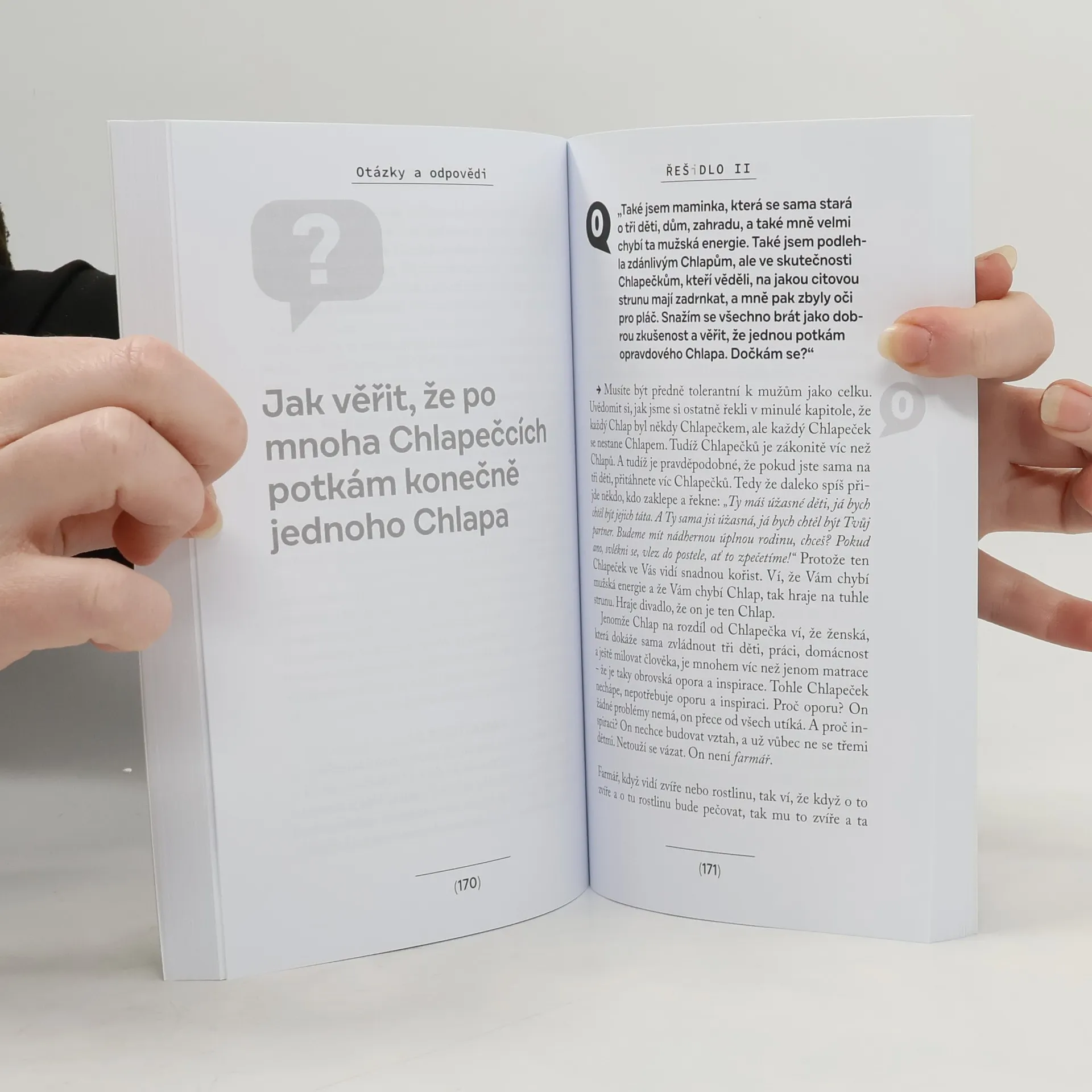 Každý den dostává Petr Casanova okolo tří set otázek na partnerské nebo jiné vztahy. Téměř každou s tvrzením „možná to nemá řešení“. Má. Všechno má nějaké řešení. To, že v negativním rozpoložení, ve kterém se často nacházíte, žádné řešení svého problému nevidíte, neznamená, že žádné řešení neexistuje, ale že ho ze svého úhlu pohledu možná vidět opravdu nemůžete. Přesvědčte se, jak je snadné vidět hvězdy, když se přestanete soustředit na tmu. Otázky týkající se vlastního vnímání (chyb, neúspěchu, druhých, nelehkých okamžiků života), zlozvyků ve vztazích (mužů i žen), chyb ve vztazích rodičů a dětí i specifických vztahových problémů, které nás trápí, a přitom mohou vztah naopak snadno upevnit. To jsou čtyři oddíly unikátní knihy, která má 288 stran a představuje výběr přepisů autentických odpovědí Petra Casanovy na nejzajímavější otázky položené v podcastovém pořadu Řešidlo. Ten vznikl v roce 2019 jako další z cest, kterými se Petr Casanova snaží pomoci čtenářům a posluchačům v neztrácení síly v náročných okamžicích života. Ano, je to kniha odpovědí na Vaše otázky.Neexistuje problém, který by neměl své řešení. Jen ho musíme být ochotni hledat. Kdo hledá, může najít. Kdo nehledá, protože nevěří v existenci řešení, ten ho najít nemůže.