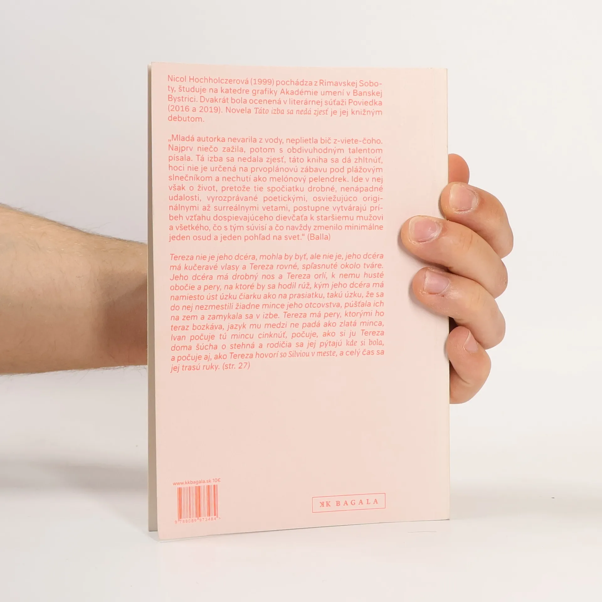 Sú debuty tápajúce, rozpačité, kvalitatívne nevyvážené, ale tento medzi ne nepatrí. Hochholczerová sa nebojí prísť s kontroverznými, drásavými témami, nekladie si servítky pred ústa, ide s kožou na trh a nie je a priori posratá z toho, ako to bude prijaté a za to jej tlieskam. Táto kniha sa dá zhltnúť, ale jej obsah v nás ešte dlho, veľmi dlho zostane nestrávený kvasiť. A to je dobre. (Ivana Gibová) Mladá autorka nevarila z vody, neplietla bič z-viete-čoho. Najprv niečo zažila, potom s obdivuhodným talentom písala. Tá izba sa nedala zjesť, táto kniha sa dá zhltnúť, hoci nie je určená na prvoplánovú zábavu pod plážovým slnečníkom a nechutí ako melónový pelendrek. Ide v nej však o život, pretože tie spočiatku drobné, nenápadné udalosti, vyrozprávané poetickými, osviežujúco originálnymi až surreálnymi vetami, postupne vytvárajú príbeh vzťahu dospievajúceho dievčaťa k staršiemu mužovi a všetkého, čo s tým súvisí a čo navždy zmenilo minimálne jeden osud a jeden pohľad na svet. (Balla)