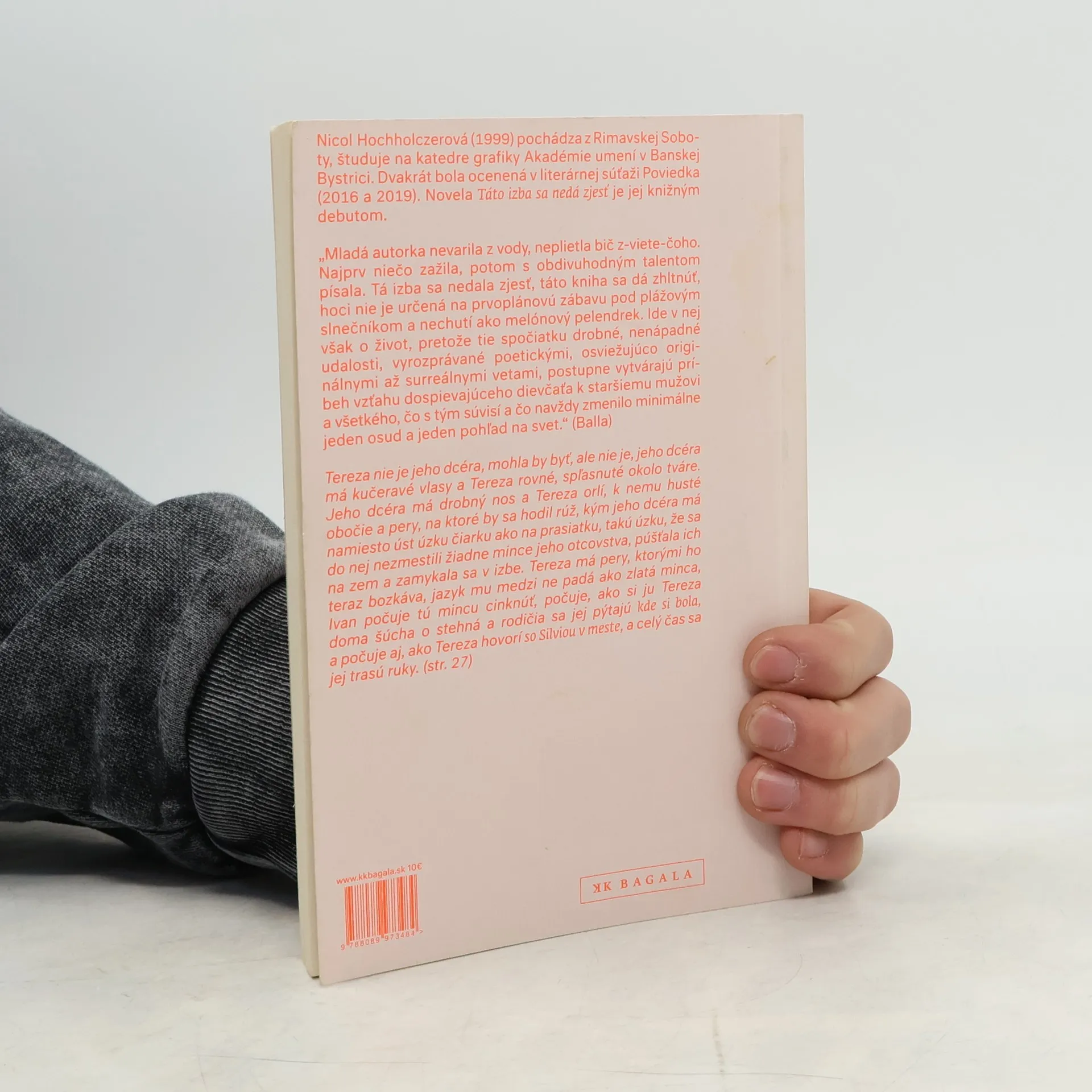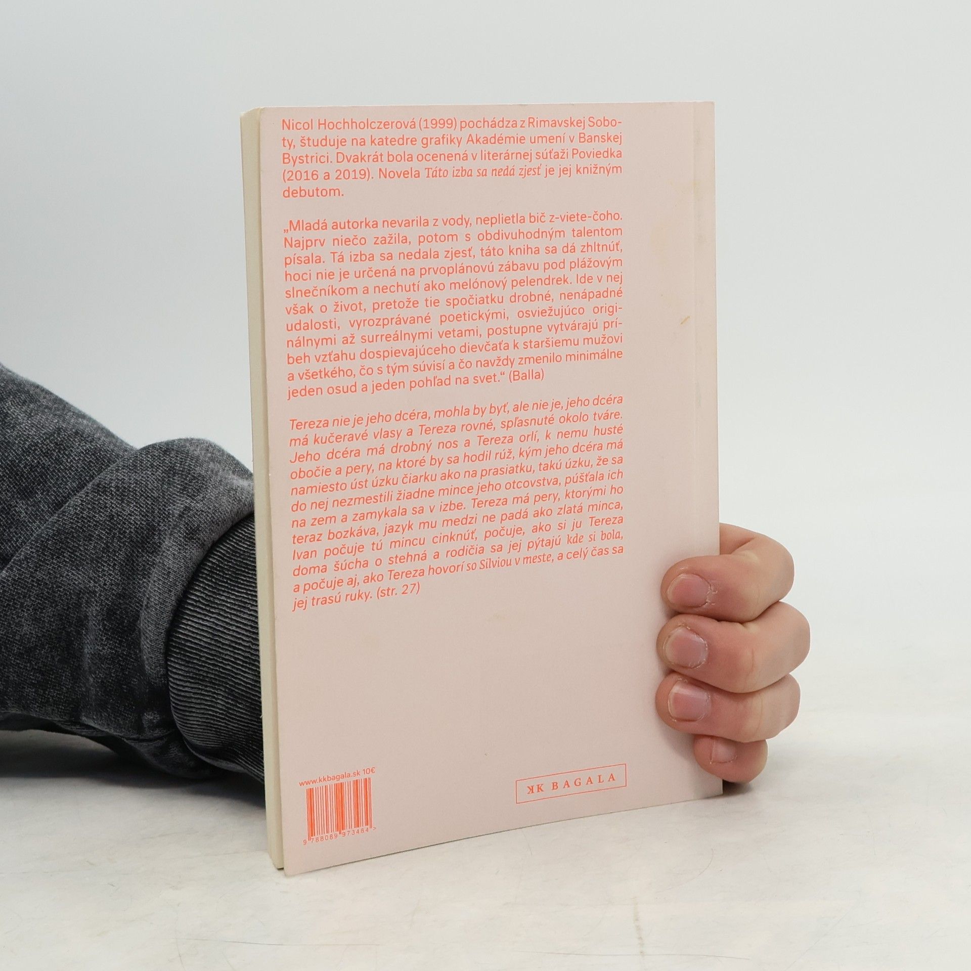 Sú debuty tápajúce, rozpačité, kvalitatívne nevyvážené, ale tento medzi ne nepatrí. Hochholczerová sa nebojí prísť s kontroverznými, drásavými témami, nekladie si servítky pred ústa, ide s kožou na trh a nie je a priori posratá z toho, ako to bude prijaté a za to jej tlieskam. Táto kniha sa dá zhltnúť, ale jej obsah v nás ešte dlho, veľmi dlho zostane nestrávený kvasiť. A to je dobre. (Ivana Gibová) Mladá autorka nevarila z vody, neplietla bič z-viete-čoho. Najprv niečo zažila, potom s obdivuhodným talentom písala. Tá izba sa nedala zjesť, táto kniha sa dá zhltnúť, hoci nie je určená na prvoplánovú zábavu pod plážovým slnečníkom a nechutí ako melónový pelendrek. Ide v nej však o život, pretože tie spočiatku drobné, nenápadné udalosti, vyrozprávané poetickými, osviežujúco originálnymi až surreálnymi vetami, postupne vytvárajú príbeh vzťahu dospievajúceho dievčaťa k staršiemu mužovi a všetkého, čo s tým súvisí a čo navždy zmenilo minimálne jeden osud a jeden pohľad na svet. (Balla)