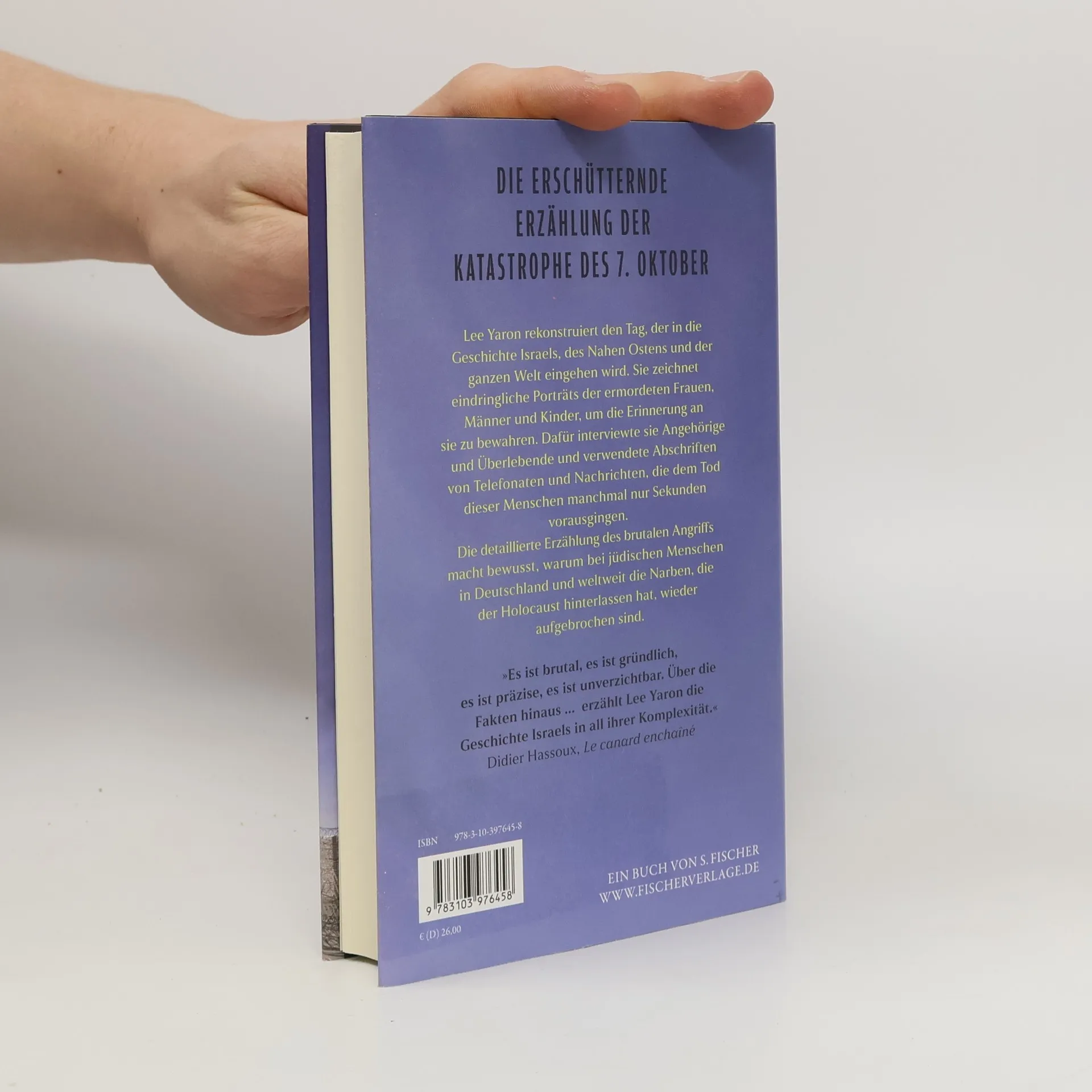 Die israelische Journalistin Lee Yaron schildert eindringlich die letzten Stunden der Opfer des Hamas-Angriffs am 7. Oktober 2023. In 12 Kapiteln rekonstruiert sie die Ereignisse an verschiedenen Schauplätzen und lässt die Opfer in szenischen Dialogen zu Wort kommen. Das Nachwort von Joshua Cohen bietet eine historische Einordnung des Übergriffs.