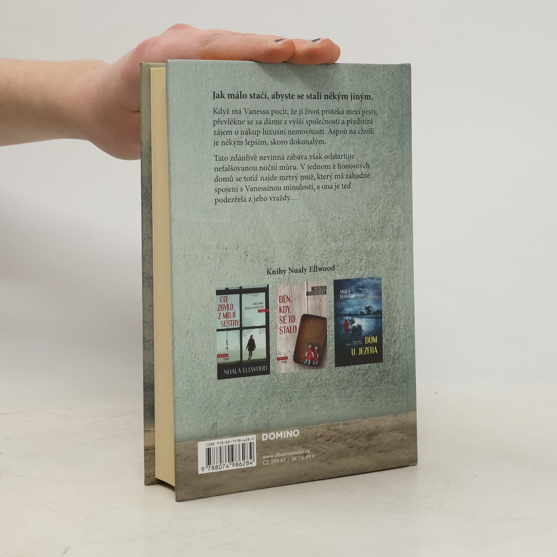 Když byla Vanessa malá, zemřela jí maminka a Vanessa našla útěchu ve snech o dokonalém životě – s dokonalým manželem a dětmi v dokonalém domě. Měla dokonce pocit, že svého bezchybného partnera už našla, ale čím déle s Connorem chodila, tím víc ji kritizoval a jejich vztah se vytrácel. Ale Vanessa věděla, jak se zbavit stresu. Našla si drogu v realitních nabídkách luxusních domů.Převlékla se za dámu z vyšší společnosti a chodila si prohlížet vily a paláce pod záminkou hledání nového domova pro svou imaginární dokonalou rodinu. Ani jednu z navštívených nemovitostí by si nemohla dovolit, ale o to tady nešlo. Hlavní byl chvilkový únik do světa, kde je všechno v pořádku.Vypadalo to jako neškodná zábava, ale jen do chvíle, než se v jednom z domů našel mrtvý muž. Policie teď Vanessu hledá jako svědkyni, která ho naposledy viděla živého. Záhadné propojení pomůže vysvětlit až Vanessina sestra, která ji vychovala místo matky, a dávný tajemný přítel z dětství. Ten na rozdíl od Vanessina vylhaného dokonalého života nebyl ani trochu imaginární...