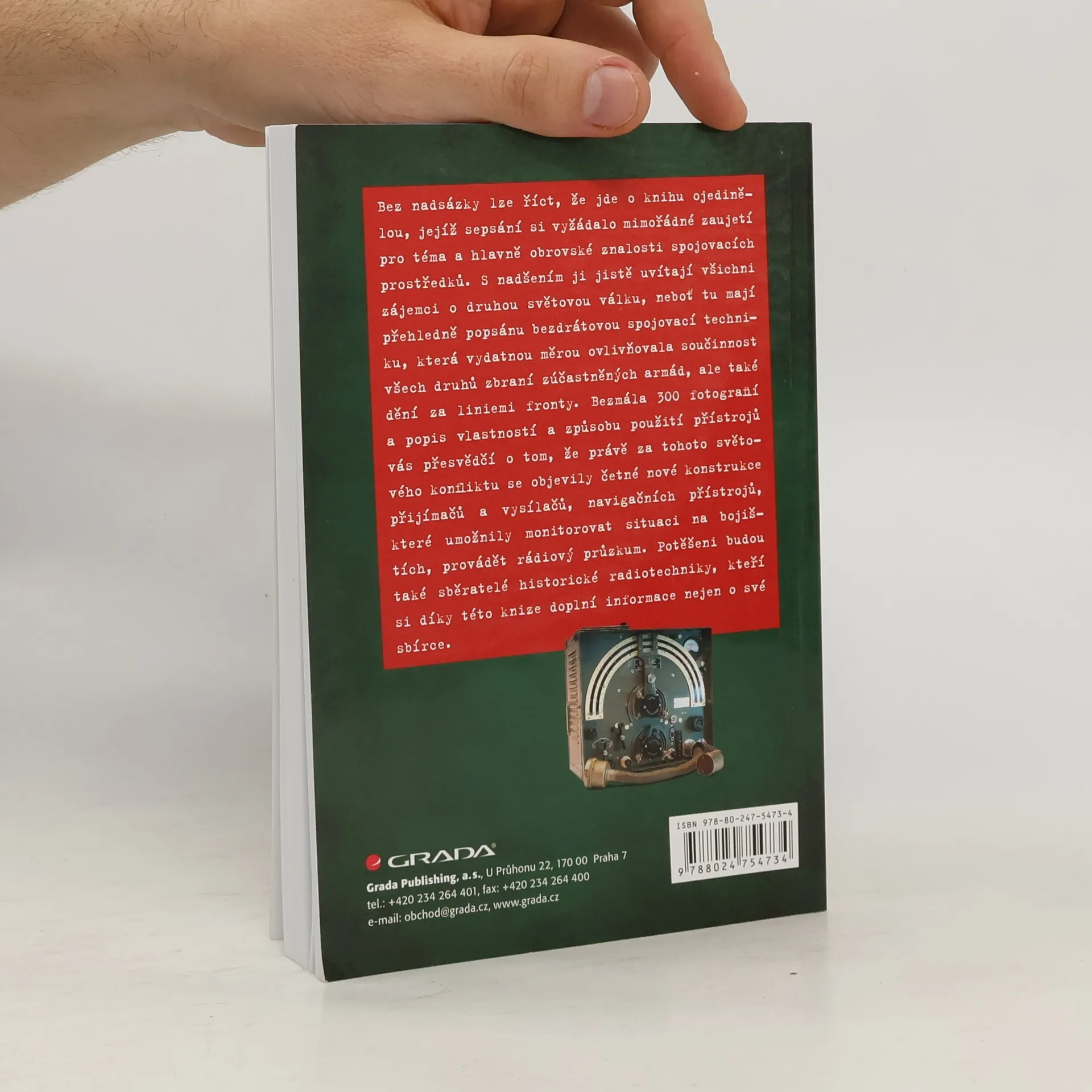 Od Pacifiku po Ural, od Finska po severní Afriku. Bez nadsázky lze říct, že jde o knihu ojedinělou, jejíž sepsání si vyžádalo mimořádné zaujetí pro téma a hlavně obrovské znalosti spojovacích prostředků. S nadšením ji jistě uvítají všichni zájemci o druhou světovou válku, neboť tu mají přehledně popsánu bezdrátovou spojovací techniku, která vydatnou měrou ovlivňovala součinnost všech druhů zbraní zúčastněných armád, ale také dění za liniemi fronty. Bezmála 300 fotografií a popis vlastností a způsobu použití přístrojů vás přesvědčí o tom, že právě za tohoto světového konfliktu dosáhl vývoj vojenské radiové techniky netušených rozměrů. Právě tehdy se objevily četné nové konstrukce přijímačů a vysílačů, navigačních přístrojů, leteckých komunikačních kompletů, přístrojů umožňujících velitelům monitorovat situaci na bojištích, zpravodajcům dešifrovat zprávy nepřátelské strany, provádět rádiový průzkum. Potěšeni budou také sběratelé historické radiotechniky, kteří si díky této knize doplní informace o své sbírce. Počet stran 288 a 16 stran barevné přílohy.