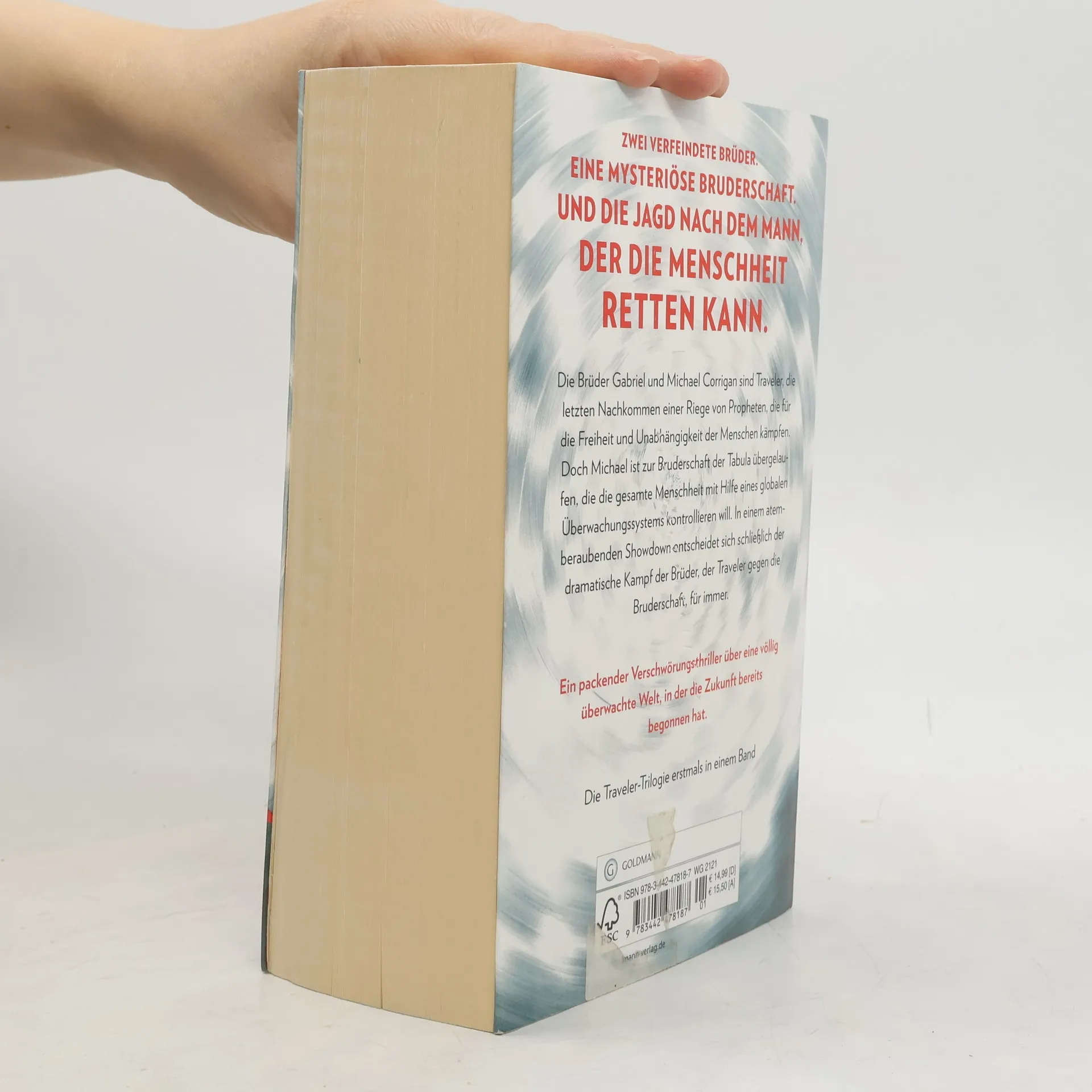 Zwei verfeindete Brüder. Eine mysteriöse Bruderschaft. Und die Jagd nach dem Mann, der die Menschheit retten kann Die Brüder Gabriel und Michael Corrigan sind Traveler, die letzten Nachkommen einer Riege von Propheten, die für die Freiheit und Unabhängigkeit der Menschen kämpfen. Doch Michael ist zur Bruderschaft der Tabula übergelaufen, die die gesamte Menschheit mit Hilfe eines globalen Überwachungssystems kontrollieren will. In einem atemberaubenden Showdown entscheidet sich schließlich der dramatische Kampf der Brüder, der Traveler gegen die Bruderschaft, für immer.
