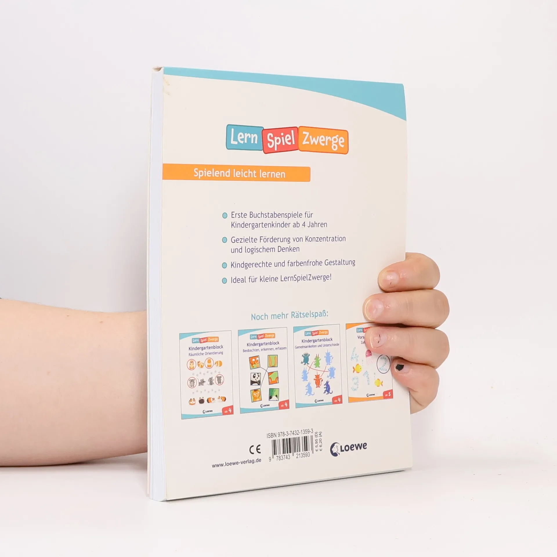 Das Buch bietet bunte Übungen zu Buchstabenspielen für Kindergartenkinder ab 4 Jahren. Es fördert spielerisch Konzentration, Motorik und Kombination. Ideal gestaltet für kleine LernSpielZwerge. Erhältlich in Buchhandlungen und Online-Shops.