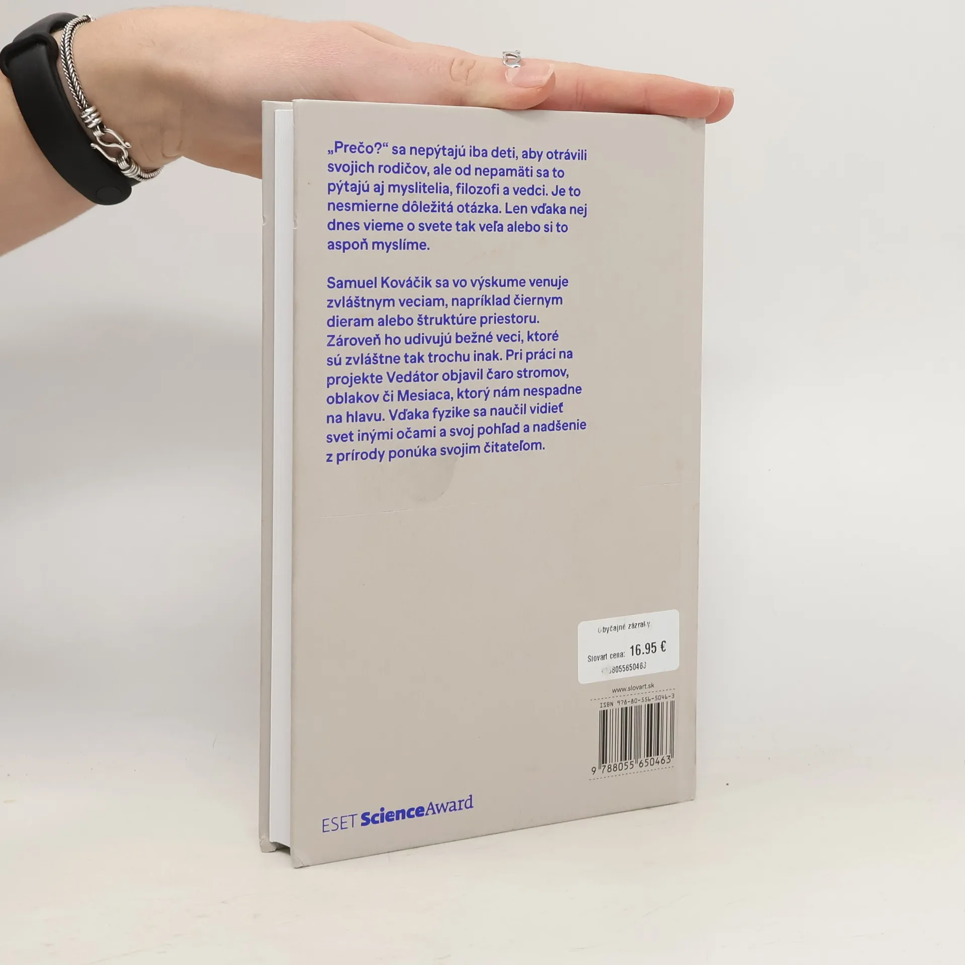 Prečo? sa nepýtajú iba deti, aby dokonale otrávili svojich rodičov, ale od nepamäti sa to pýtajú aj myslitelia, filozofi a vedci. Je to nesmierne dôležitá otázka, a len vďaka nej dnes vieme o svete pomerne veľa, alebo si to aspoň myslíme. Samuel Kováčik, fyzik, ktorý stojí za projektom Vedátor.sk, rozpráva o vede fascinujúcim spôsobom. A to bez jediného vzorca či rovnice. Vysvetľuje bežné veci okolo nás - prečo je rastlina zelená, prečo Mesiac nespadne, ako vzniká dúha, odkiaľ sa berú oblaky či snehové vločky, prečo máme ročné obdobia. Pre niekoho to môže byť nuda, no pre Samuela sú to obyčajné zázraky a pre rodičov to môžu byť odpovede na detskú otázku - Prečo?