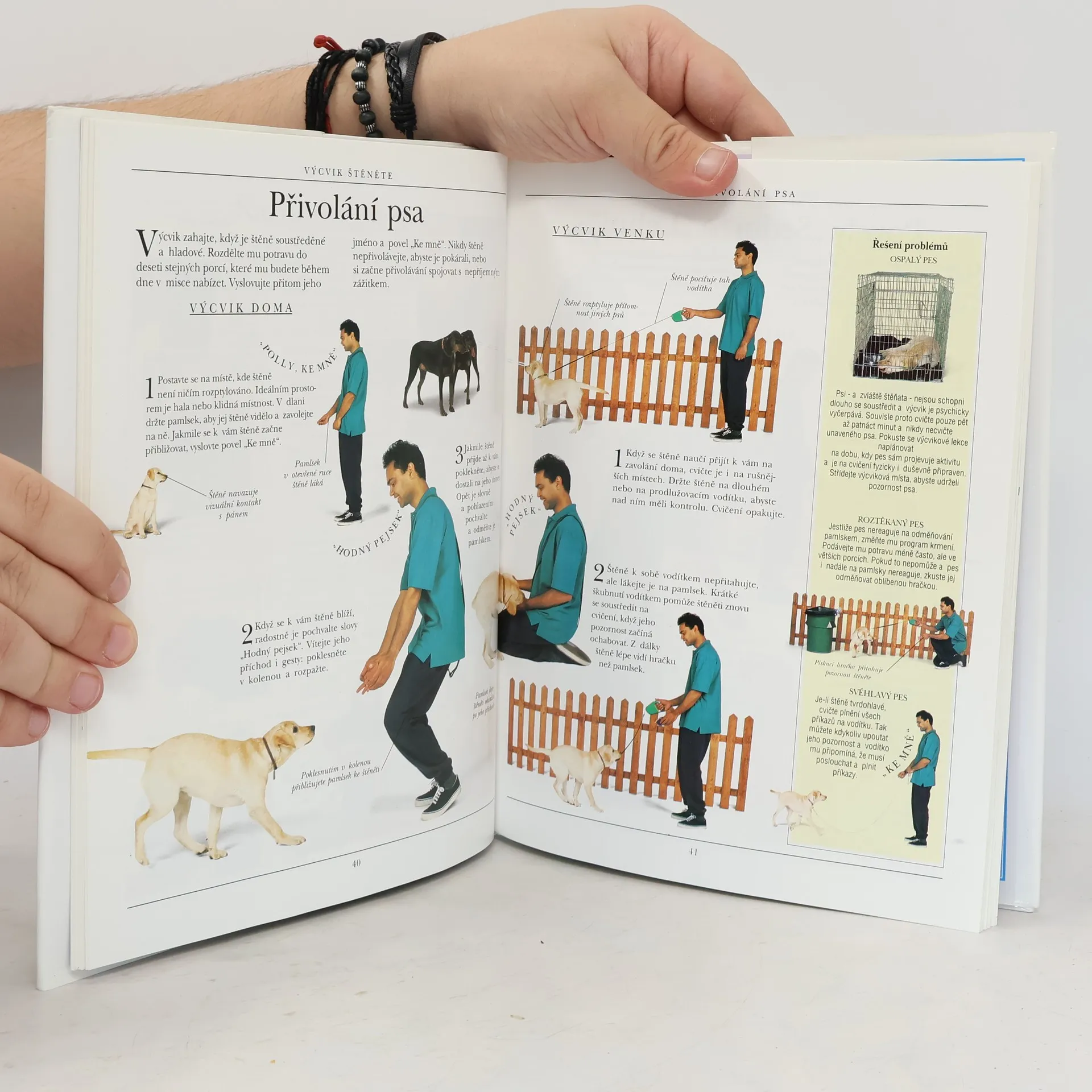 Barevná kniha o výchově a výcviku psů. Kompletní kniha o výchově a výcviku psů všech věkových kategorií: Psychika vašeho psa-Jak pes uvažuje, Rozdíly mezi plemeny, Typy osobností, Výcvik malého štěněte, Odměny a tresty, Dokonalé načasování, Vydávání povelů, ... a vše najednou. Výcvik štěněte-První domácí návyky, Základní vybavení, Navykání na klec, Výcvik v domě, Každodenní péče, Přivolání psa, Povely "Sedni" a "Lehni", Chůze bez vodítka, Chůze na vodítku, Vhodné hračky, Nové zkušenosti. Další výcvik-Ovládání a omezování psa, Povely "Sedni" a "Zůstaň", Povely "Ke mně" a "Sedni", Povel "Lehni", Povel "Lehni" a "Zůstaň", Odložení, Štěkání na povel, Práce tlapkami, Chůze u nohy, Držení předmětů, Přinášení předmětů, Psi a děti, Hry, Hry s jinými psy. Odstraňování zlozvyků-Pochopení a prevence, Odhadování povahy psa, Tahání na vodítku, Nerespektování povelu "Ke mně", Pronásledování vozidel, Pronásledování zvířat, Agresivita vůči psům, Agresivita vůči lidem, Kousání ze strachu, Hlídání, Rivalita mezi psy, Problémy se sexem, Problémy v autech, Nervozita, Nuda, Léčba nudy, Vyskakování, Vzrušené chování, Stravovací zlozvyky.... celý text