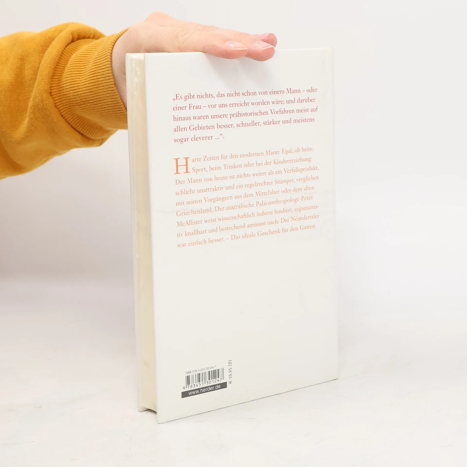 Das Buch beleuchtet das Drama des modernen Mannes und vergleicht ihn kritisch mit Männern aus dem Mittelalter und der Antike. Der Anthropologe Peter McAllister zeigt humorvoll, dass der Urmensch in vielerlei Hinsicht überlegen war. Ein ideales Geschenk für Männer.