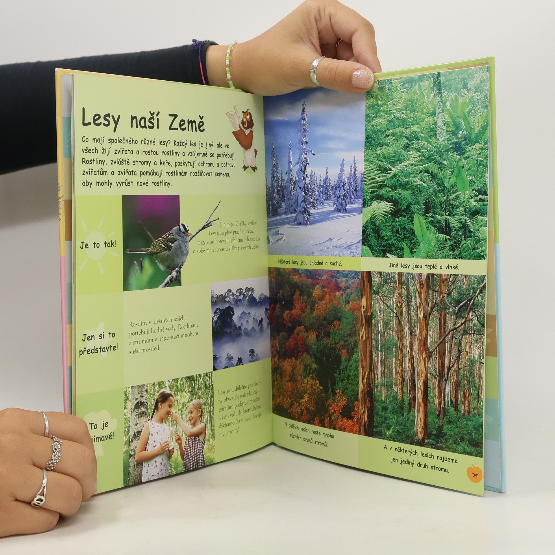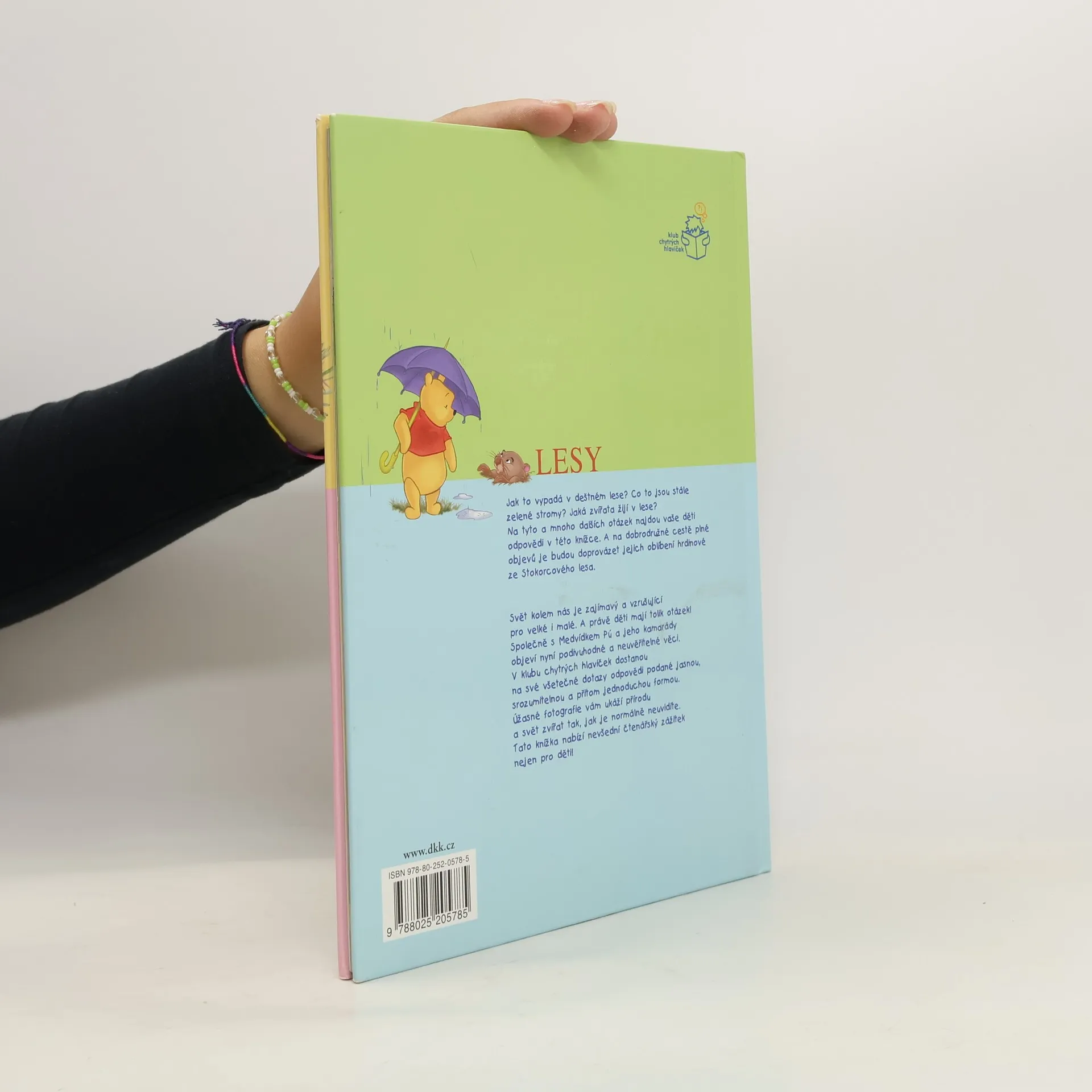 Kniha z edice Medvídek Pú moje první kniha je bohatě ilustrovanou encyklopedií pro nejmenší děti. V úvodu je text věnovaný rodičům, potom úvodní Púovo přemýšlení, které uvede k tématu a dále už následuje naučná část tvořená formou otázek a odpovědí doplněných spoustou obrázků tentokrát k tématu Lesy. Poslední dvojstrana je jakýmsi testem toho, jestli děti dávaly při čtení pozor a něco se naučily. Celou knihou provádějí a při učení pomáhají medvídek Pú a jeho kamarádi tygr, prasátko a klokánek, kteří nám pomohou s odpověďmi na všetečné dětské otázky (Jak to vypadá v deštném lese? Co to jsou stále zelené stromy? Jaká zvířata žijí v lese?)