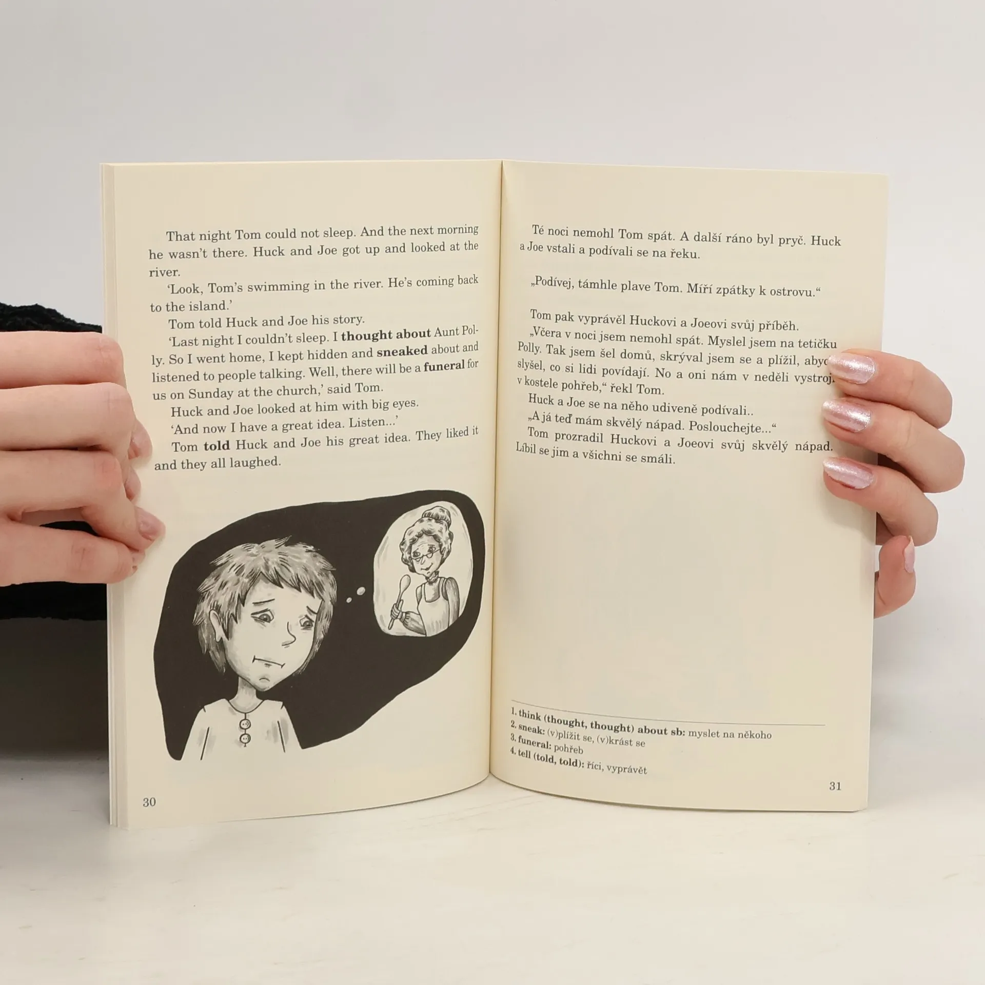 Tom has nothing but pranks and mischief on his mind. But luckily his good friend Huck loves adventure as much as he does. When the boys witness a murder in a graveyard, their courage is put to the test! Tom nemyslí celý den na nic jiného, než na vtípky a lumpárny. Naštěstí má ale dobrého kamaráda Hucka, který miluje dobrodružství stejně jako on. Když se však chlapci stanou svědky vraždy na hřbitově, je jejich odvaha vystavena zkoušce!