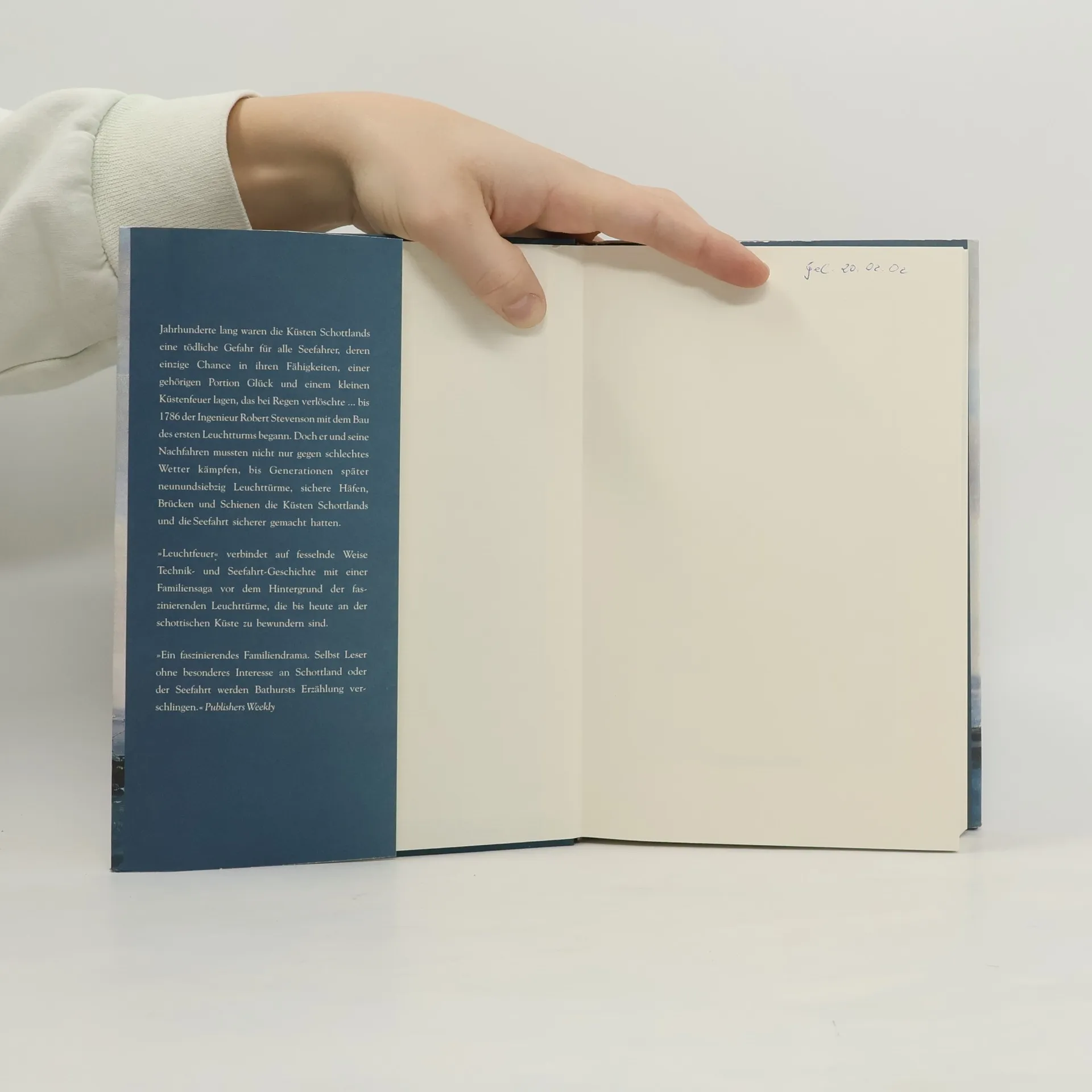 Balla Bathurst beschreibt die Entstehung der schottischen Leuchttürme im 18./19. Jahrhundert und die Gefahren der Seefahrt. Sie erzählt auch von der Ingenieursfamilie Stevenson, die den Leuchtturm-Bau prägte, und verbindet Technik- und Seefahrtgeschichte mit einer Familiensaga.