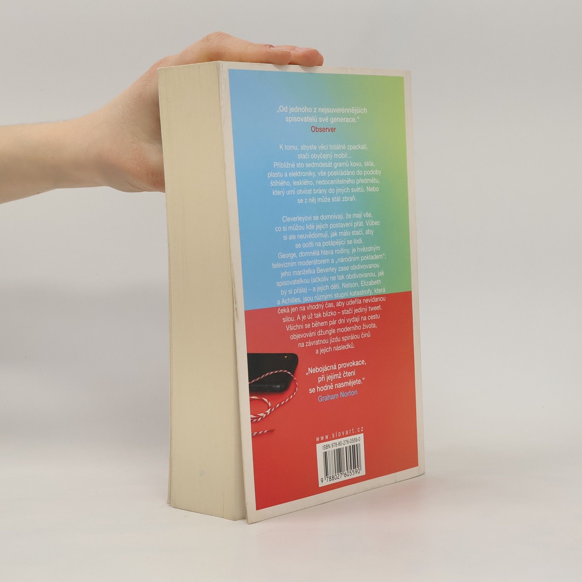 Moderní román irského prozaika předkládá čtenáři zapeklitý příběh plný nečekaných pravd a zrad. Ale i objevování staronových vztahů. To vše ve světle nových technologií, které nám někdy mohou pekelně zkomplikovat život.Román bez servítek a neuvěřitelně zábavným způsobem nastavuje zrcadlo dnešní době, především vlivu médií a sociálních sítí na život společnosti, kde může jediný příspěvek odeslaný z mobilního telefonu na Twitter či Instagram převrátit naruby život jedinci i celé jeho rodině, tak jak se to stalo hrdinům románu, rodině Cleverlyových, žijící v dnešním Londýně. Na jejich příběhu John Boyne ukazuje, jak se tak skvělá věcička jako mobilní telefon, neboli 180 gramů kovu, skla a plastu, může stát v rukou „ignorantů" a „hlupáků" velmi nebezpečnou zbraní. Člověk může být sebelaskavější filantrop, ale stačí pár slov utroušených v dobré víře a míněných jako podpora a svět sociálních sítí si všechno překroutí dle své vůle a učiní z dotyčného monstrum.