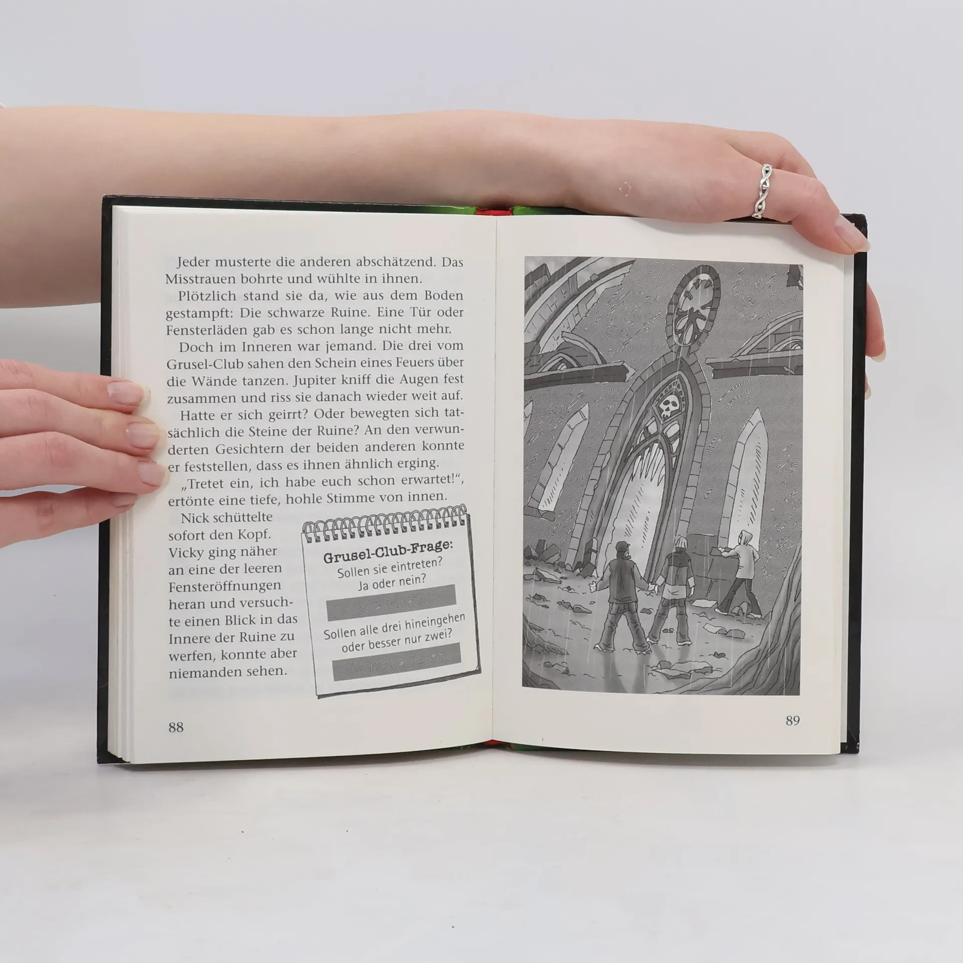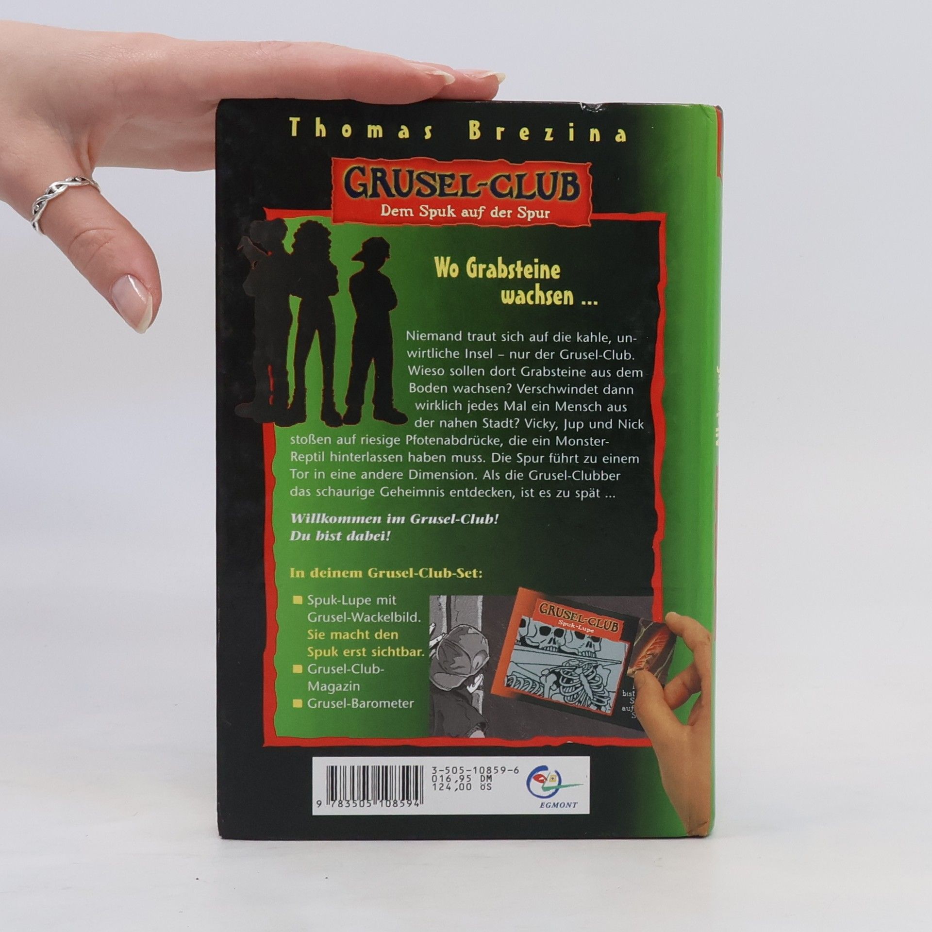 Der Grusel-Club wagt sich auf eine unheimliche Insel, wo Grabsteine aus dem Boden wachsen und Menschen verschwinden. Vicky, Jup und Nick finden riesige Pfotenabdrücke, die auf ein Monster-Reptil hindeuten. Ihre Entdeckung eines geheimen Tors in eine andere Dimension führt zu einem schaurigen Geheimnis.