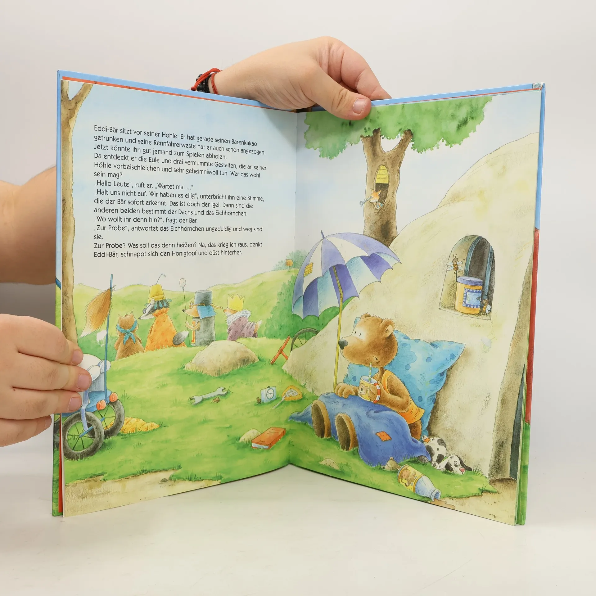 Alles halb so schlimm – eine fröhliche Schiefgeh-und-Wiedergutwerde-Geschichte vom kleinen Raben Socke und seinen Freunden! Eigentlich will Eddi-Bär seinen Freunden nur zeigen, dass er supertoll Dreirad fahren kann, aber leider hat er heute einen absoluten Pechtag erwischt. Erst geht ein Stuhl zu Bruch, dann kippt der Honigtopf um, beim Wasserholen wird alles pudelnass und am Schluss kracht sogar die Theaterbühne unter ihm zusammen. Kein Wunder, dass seine Freunde ziemlich sauer auf ihn sind und der kleine Rabe Socke ihn deswegen ganz schön piesackt. Aber Eddi-Bär hat die Sachen ja nicht mit Absicht kaputt gemacht und so ein Missgeschick kann doch jedem mal passieren, oder?