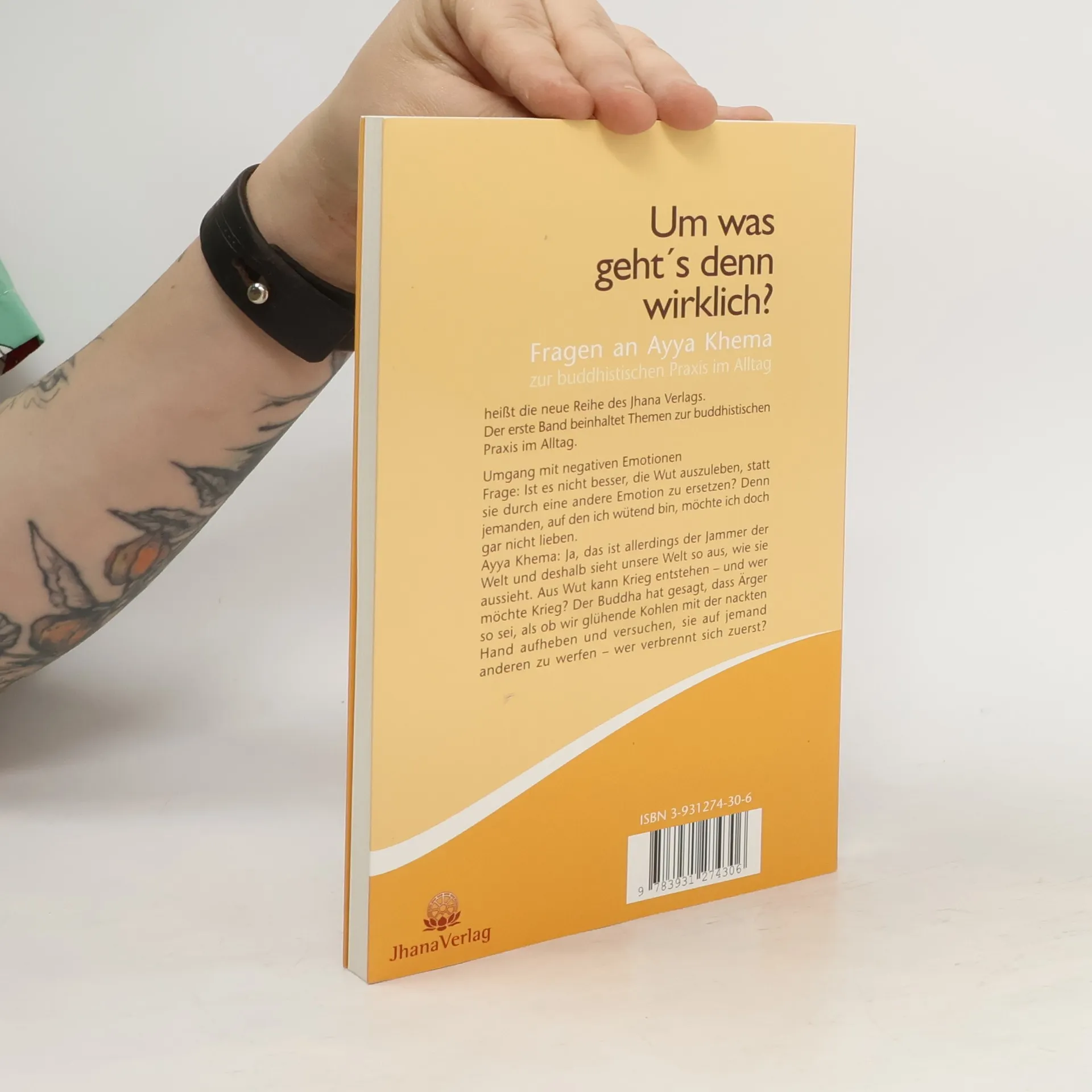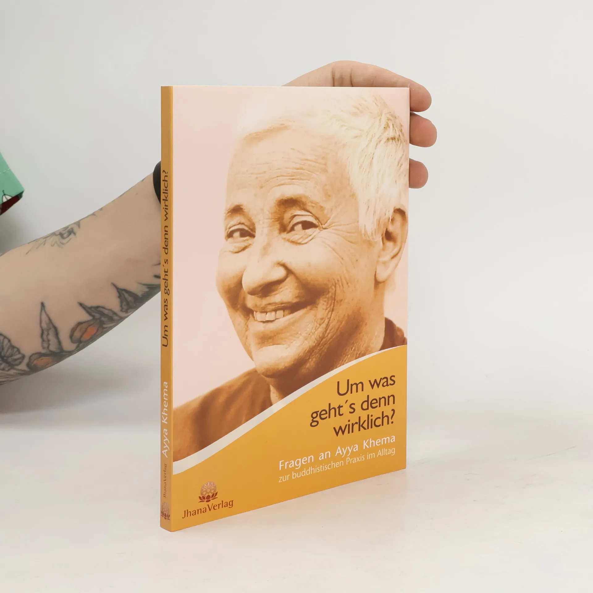 Der erste Band der Reihe „Fragen an Ayya Khema“ des Jhana Verlags behandelt buddhistische Praxis im Alltag. Themen sind Achtsamkeit, Mut zur Überzeugung, Glück finden, Reaktionen erkennen und Sinn des Lebens. Die Fragen und Antworten stammen aus Meditationsseminaren und wurden von Traudel Reiß thematisch zusammengestellt.