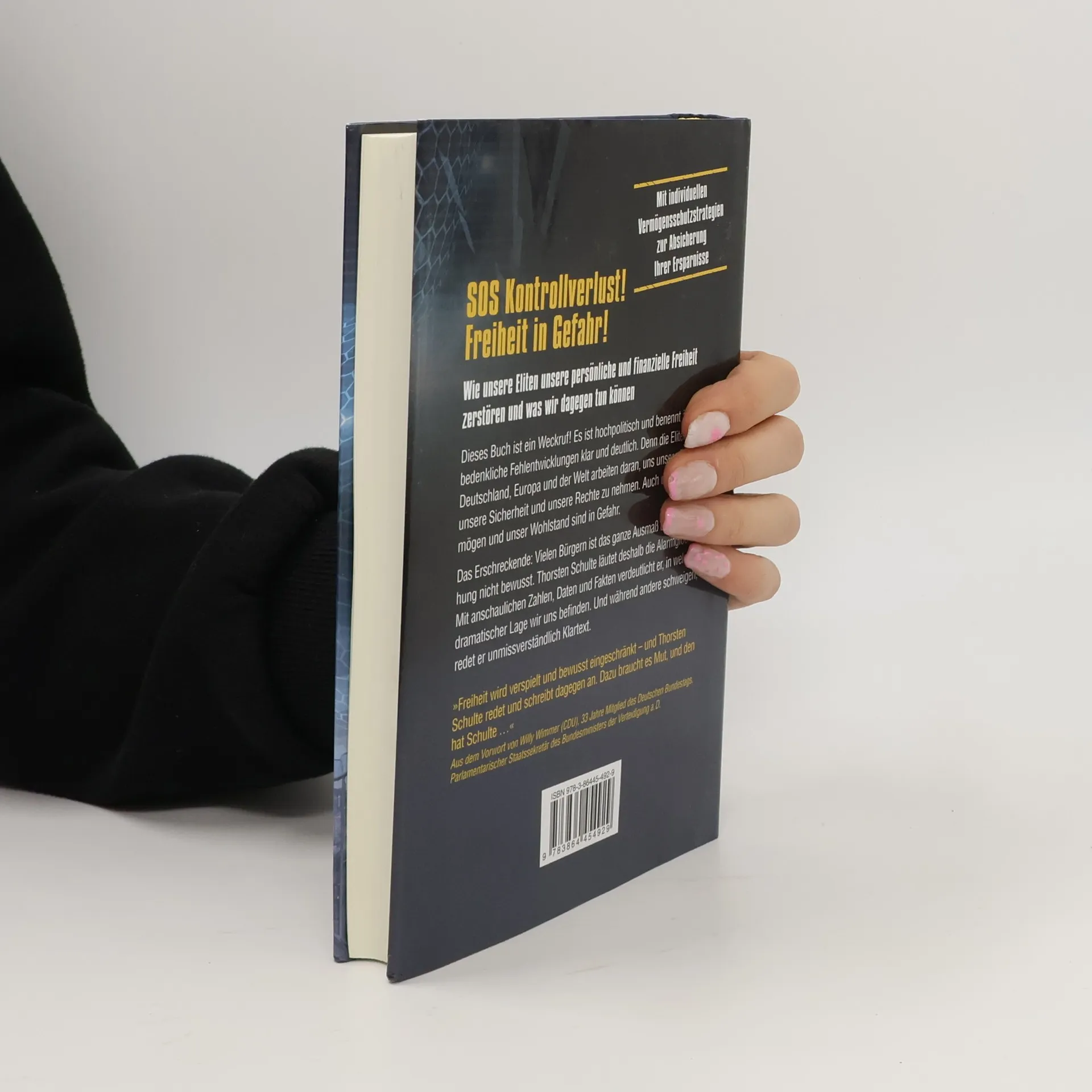 SOS Kontrollverlust! Freiheit in Gefahr! Dieses Buch ist ein Weckruf und thematisiert besorgniserregende Entwicklungen, die unsere persönliche und finanzielle Freiheit bedrohen. Die Eliten in Deutschland, Europa und der Welt arbeiten daran, uns unsere Rechte und unser Vermögen zu entziehen. Viele Bürger sind sich der gesamten Bedrohung nicht bewusst, weshalb Thorsten Schulte die Alarmglocken läutet. Mit klaren Zahlen und Fakten verdeutlicht er die dramatische Lage, während andere schweigen. Er zeigt auf, wie Bundeskanzlerin Angela Merkel gegen Recht und Gesetz verstößt und Brüsseler Technokraten zunehmend Macht an sich reißen, was die Entmündigung der Bürger zur Folge hat. Wenn die Herrschaft des Rechts endet, wird es keine guten Zeiten geben. Es liegt an uns, unsere Freiheit und eine lebenswerte Zukunft zu verteidigen. Wir dürfen unsere Privatsphäre, Meinungsvielfalt, Rechtsstaatlichkeit und unser Bargeld nicht aufgeben. Denn einmal verloren, werden wir unsere Freiheit nie zurückbekommen. Angesichts der riskanten Politik der EZB, die in einem Kollaps der Finanzsysteme enden könnte, bietet das Buch zahlreiche umsetzbare Empfehlungen, um Ihr Vermögen zu schützen. „Lassen Sie uns alle eine Leuchtfackel für unsere Freiheit werden. Wir dürfen nicht kapitulieren!“ – Thorsten Schulte.