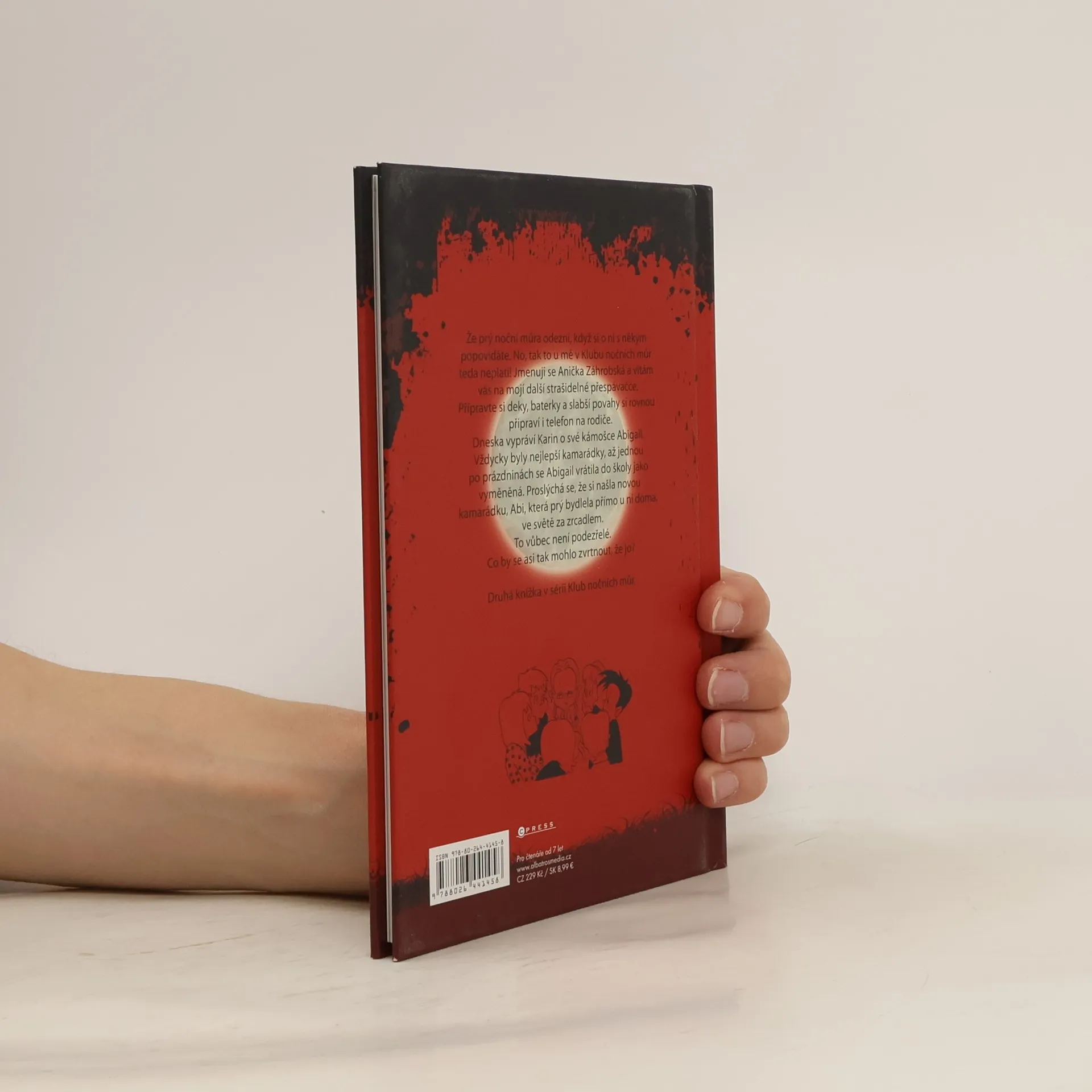 Že prý noční můra odezní, když si o ní s někým popovídáte. No, tak to u mě v Klubu nočních můr teda neplatí! Jmenuji se Anička Záhrobská a vítám vás na mojí další strašidelné přespávačce. Připravte si deky, baterky a slabší povahy si rovnou připraví i telefon na rodiče. Dneska vypráví Karin o své kámošce Abigail. Vždycky byly nejlepší kamarádky, až jednou po prázdninách se Abigail vrátila do školy jako vyměněná. Proslýchá se, že si našla novou kamarádku, Abi, která prý bydlela přímo u ní doma, ve světě za zrcadlem. To vůbec není podezřelé. Co by se asi tak mohlo zvrtnout, že jo? Druhá knížka v sérii Klub nočních můr.