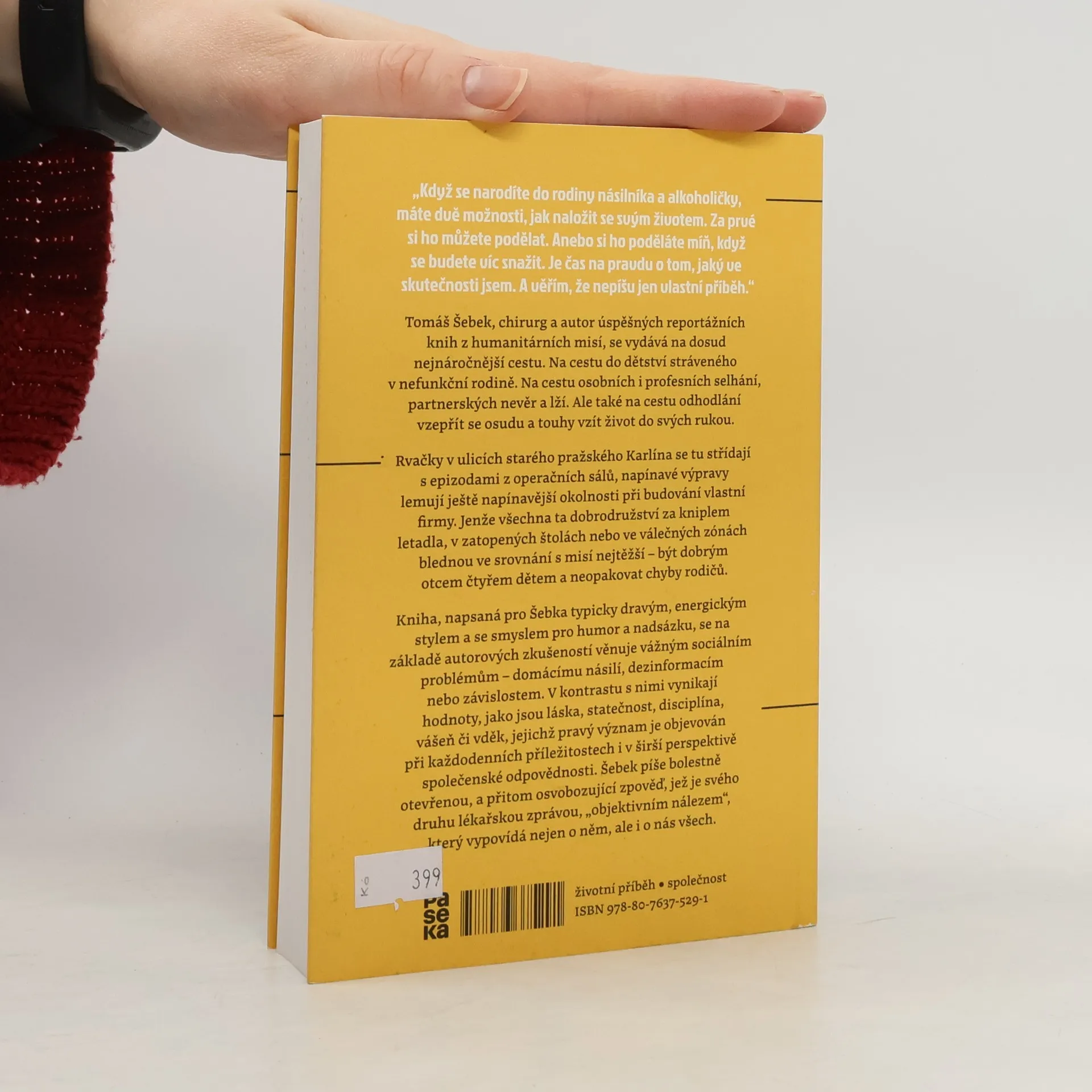 Tomáš Šebek, chirurg a autor úspěšných reportážních knih z humanitárních misí, se vydává na dosud nejnáročnější cestu. Na cestu do dětství stráveného v nefunkční rodině. Na cestu osobních i profesních selhání, partnerských nevěr a lží. Ale také na cestu odhodlání vzepřít se osudu a touhy vzít život do svých rukou. Rvačky v ulicích starého pražského Karlína se tu střídají s epizodami z operačních sálů, napínavé výpravy lemují ještě napínavější okolnosti při budování vlastní firmy. Jenže všechna ta dobrodružství za kniplem letadla, v zatopených štolách nebo ve válečných zónách blednou ve srovnání s misí nejtěžší – být dobrým otcem čtyřem dětem a neopakovat chyby rodičů. Kniha, napsaná pro Šebka typicky dravým, energickým stylem a se smyslem pro humor a nadsázku, se na základě autorových zkušeností věnuje vážným sociálním problémům – domácímu násilí, dezinformacím nebo závislostem. V kontrastu s nimi vynikají hodnoty, jako jsou láska, statečnost, disciplína, vášeň či vděk, jejichž pravý význam je objevován při každodenních příležitostech i v širší perspektivě společenské odpovědnosti. Šebek píše bolestně otevřenou, a přitom osvobozující zpověď, jež je svého druhu lékařskou zprávou, „objektivním nálezem“, který vypovídá nejen o něm, ale i o nás všech.