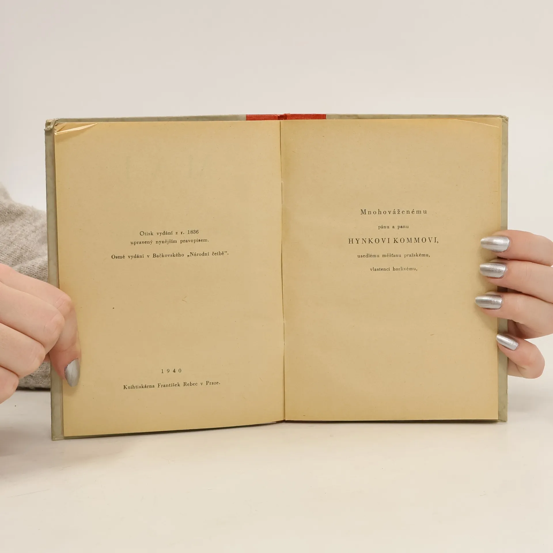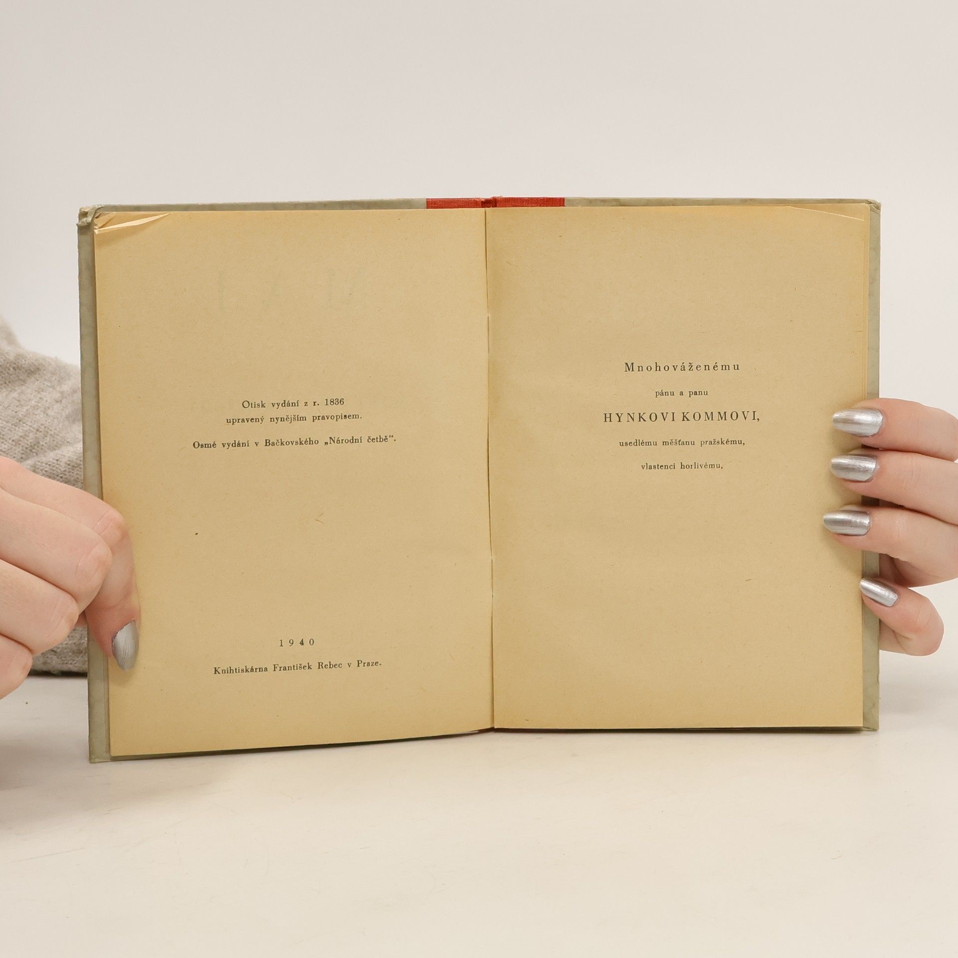 Otisk vydání z r. 1836 upravený nynějším pravopisem. Osmé vydání v Bačkovského "Národní četbě".