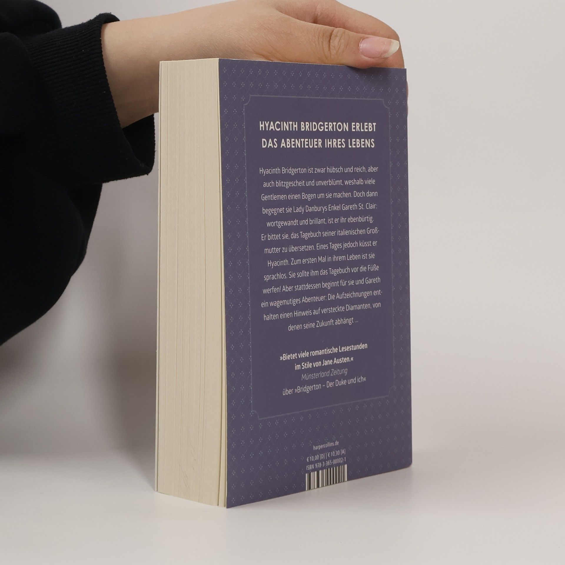 Hyacinth Bridgerton erlebt das Abenteuer ihres Lebens Hyacinth Bridgerton ist zwar hübsch und reich, aber auch blitzgescheit und unverblümt, weshalb viele Gentlemen einen Bogen um sie machen. Doch dann begegnet sie Lady Danburys Enkel Gareth St. Clair: wortgewandt und brillant, ist er ihr ebenbürtig. Er bittet sie, das Tagebuch seiner italienischen Großmutter zu übersetzen. Eines Tages jedoch küsst er Hyacinth. Zum ersten Mal in ihrem Leben ist sie sprachlos. Sie sollte ihm das Tagebuch vor die Füße werfen! Aber stattdessen beginnt für sie und Gareth ein wagemutiges Abenteuer: Die Aufzeichnungen enthalten einen Hinweis auf versteckte Diamanten, von denen seine Zukunft abhängt ... »Bietet viele romantische Lesestunden im Stile von Jane Austen.« Münsterland Zeitung über »Bridgerton– Der Duke und ich« »Das siebte und zweitletzte Buch der Bridgerton-Reihe fesselt mehr denn je.« Tize