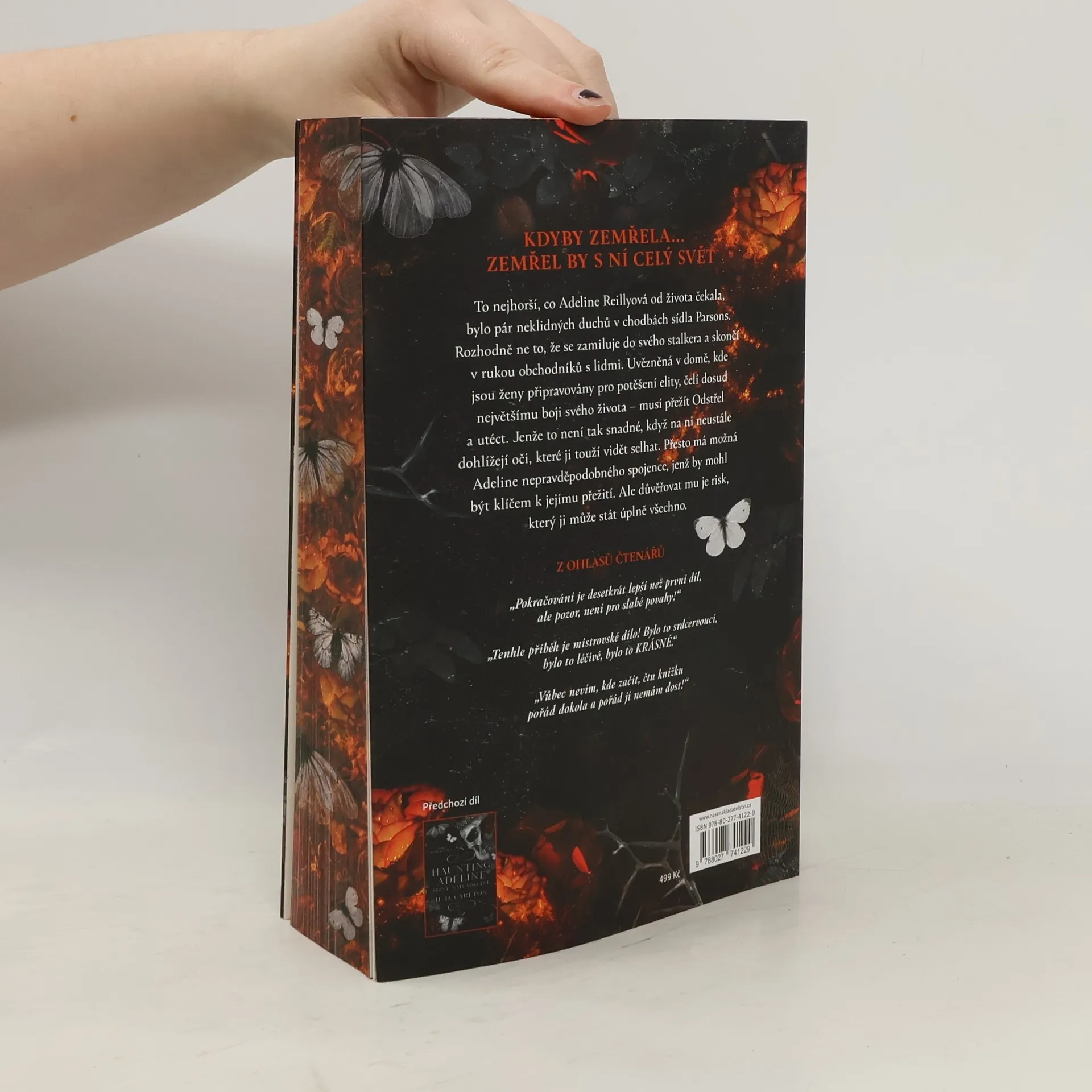 To nejhorší, co Adeline Reillyová od života čekala, bylo pár neklidných duchů v chodbách sídla Parsons – rozhodně ne to, že se zamiluje do svého stalkera a skončí v rukou obchodníků s lidmi. Uvězněná v domě, kde jsou ženy připravovány pro potěšení elity, čelí dosud největšímu boji svého života – musí přežít Odstřel a utéct. Jenže to není tak snadné, když na ni neustále dohlížejí oči, které ji touží vidět selhat. Přesto má možná Adeline nepravděpodobného spojence, který by mohl být klíčem k jejímu přežití. Ale důvěřovat mu je risk, který ji může stát úplně všechno. Zade mezitím neustane, dokud Adeline nebude zpátky v bezpečí jeho náruče, i kdyby kvůli tomu měl zapálit celý svět. Lovit svou myšku je to, co umí nejlépe, ale žena, kterou bude, až ji najde, je možná větší sousto, než dokáže zvládnout. Nejtěžší zkouškou jejich vztahu nebude čas, ale vzpomínky na to, kým bývali.